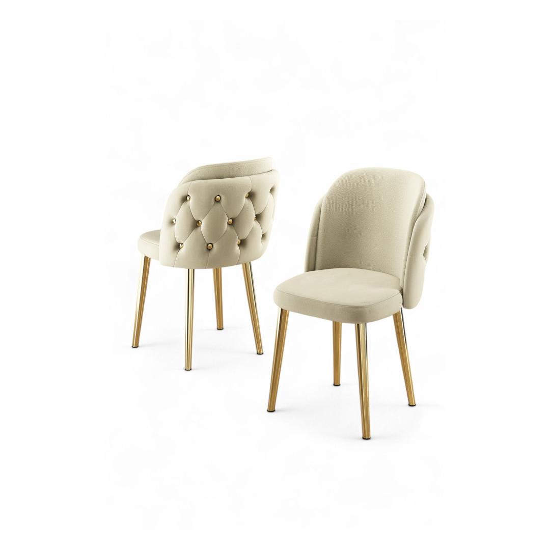 Muuda oma söögituba luksuslikuks ja elegantseks ruumiks meie hämmastava Toolide komplektiga. Kreemi ja kuldse värvi kombinatsioon lisab igale sisustusele peenust, samas kui stiilne metallraam ja vineerist seljatugi tagavad vastupidavuse ja stabiilsuse.