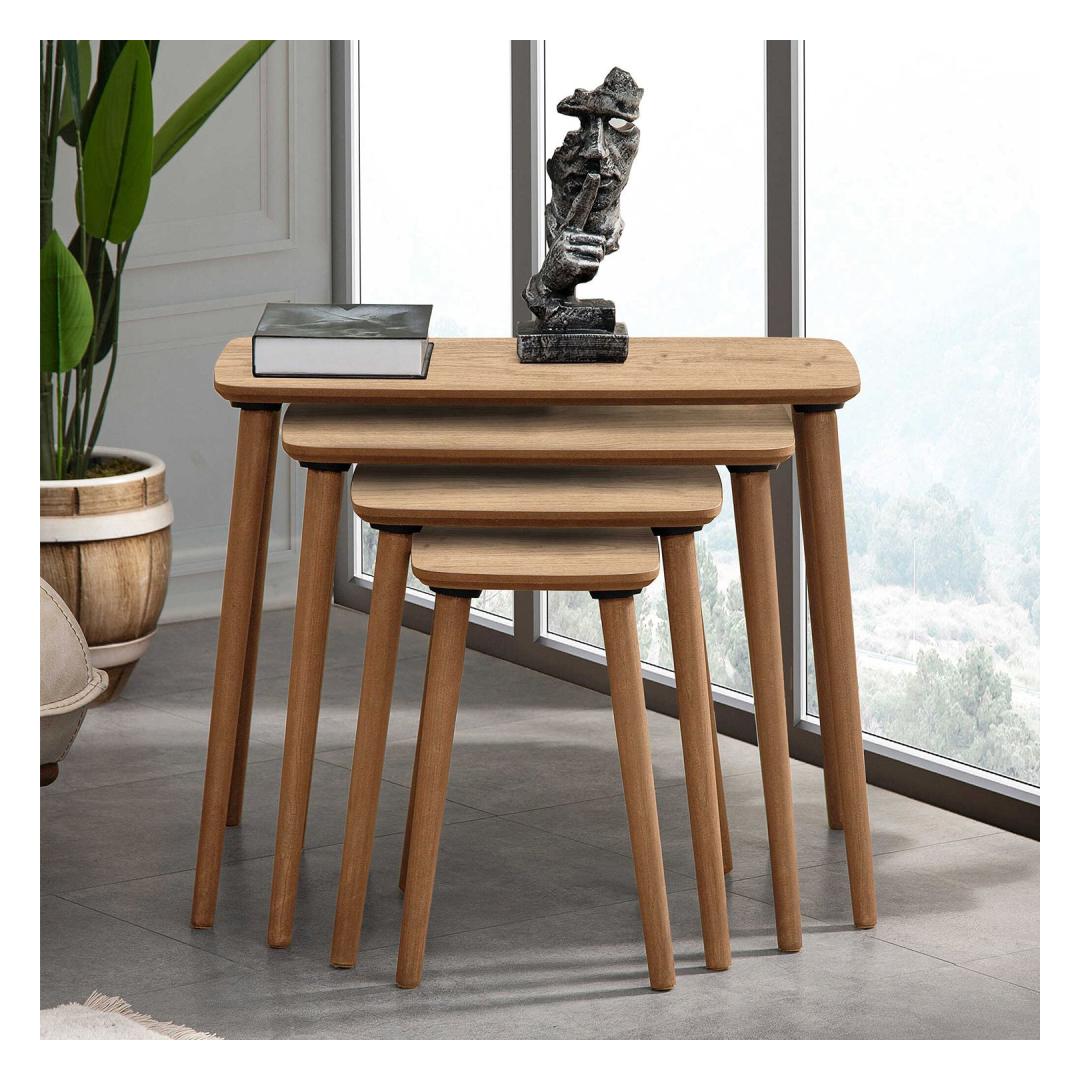 Kas otsite, kuidas lisada oma eluruumi elegantsi ja funktsionaalsust? Siis vaadake meie kaunist pesastatavate laudade komplekti! See 4 kaunilt valmistatud laua komplekt on ideaalne täiendus igasse koju, pakkudes nii stiili kui ka praktilisust ühes.
