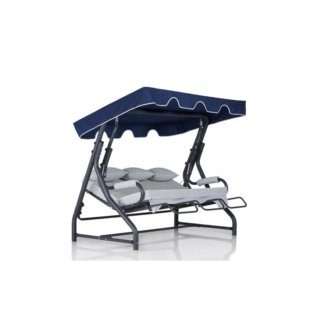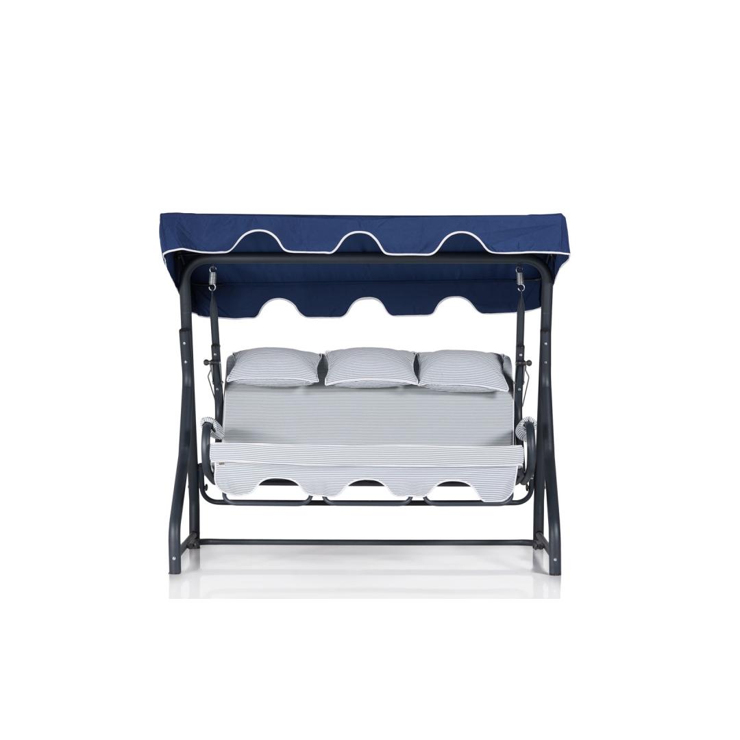 100% metallraamiga valmistatud aia kolmekordne kiiktool on ehitatud nii, et see peab vastu. Kaaluvõimega 240 kg mahutab see hõlpsasti mitu inimest, mistõttu sobib see ideaalselt koosviibimiseks või lihtsalt lähedase inimesega õõtsutamiseks. Eemaldatav padi lisab mitmekülgsust, võimaldades teil oma istumiskogemust kohandada.