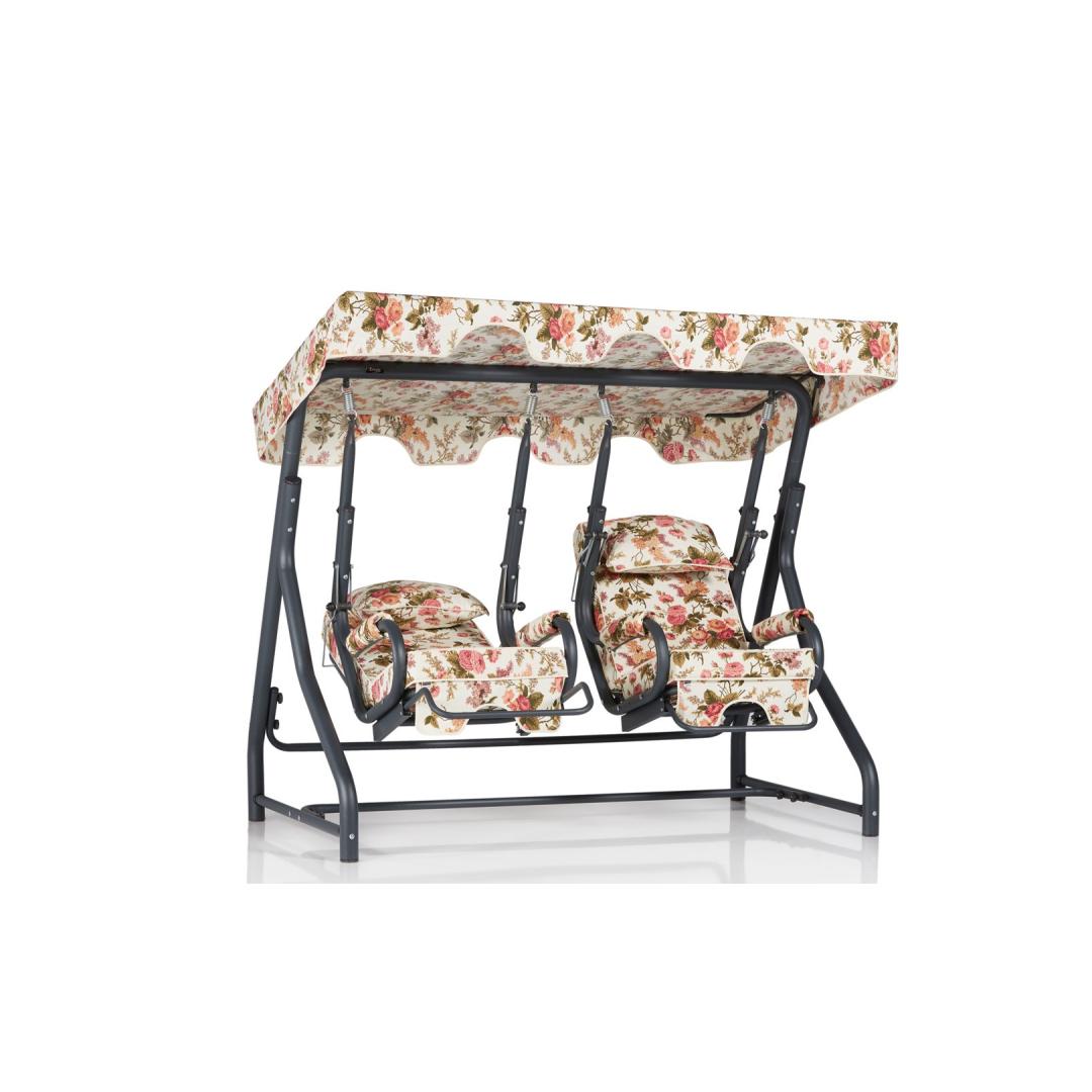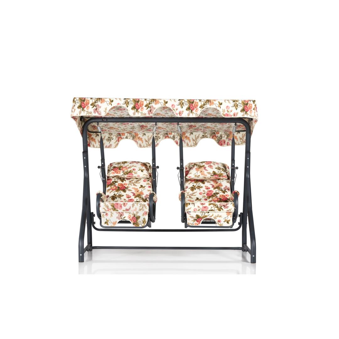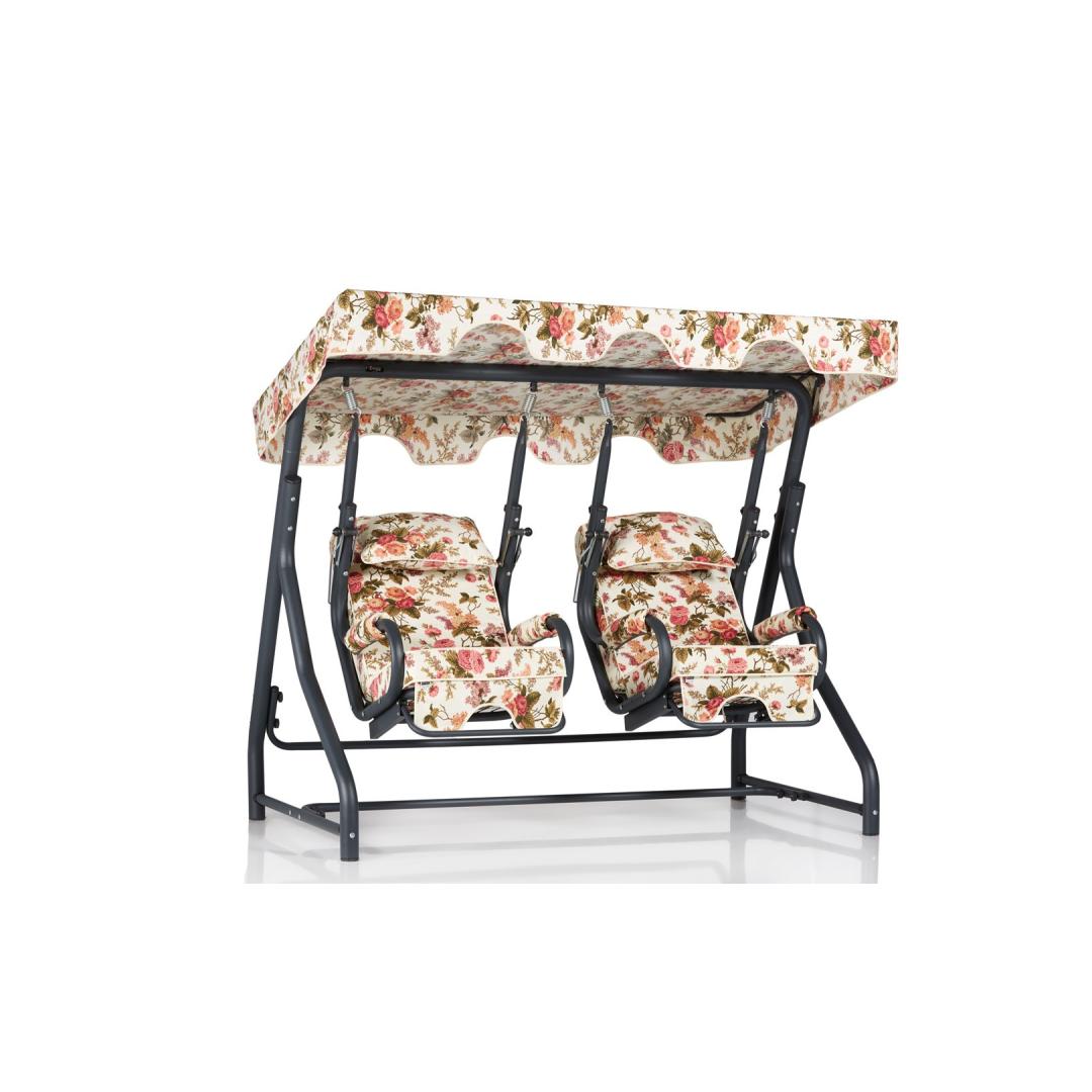 Õite, aastaaegade ja kevade ilu inspireeritud disainiga lisab see kiiktool teie aeda või terrassile elegantsi. Tugev metallraam tagab vastupidavuse ja stabiilsuse, nii et saate kiikuda rahuliku meelega.