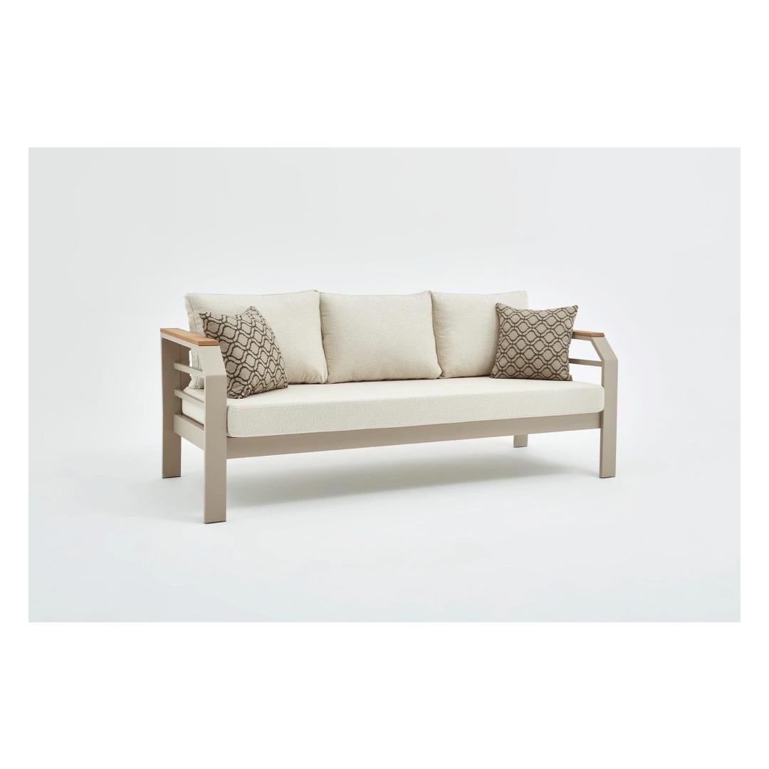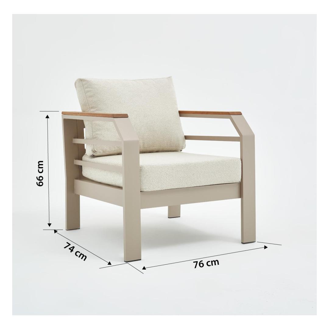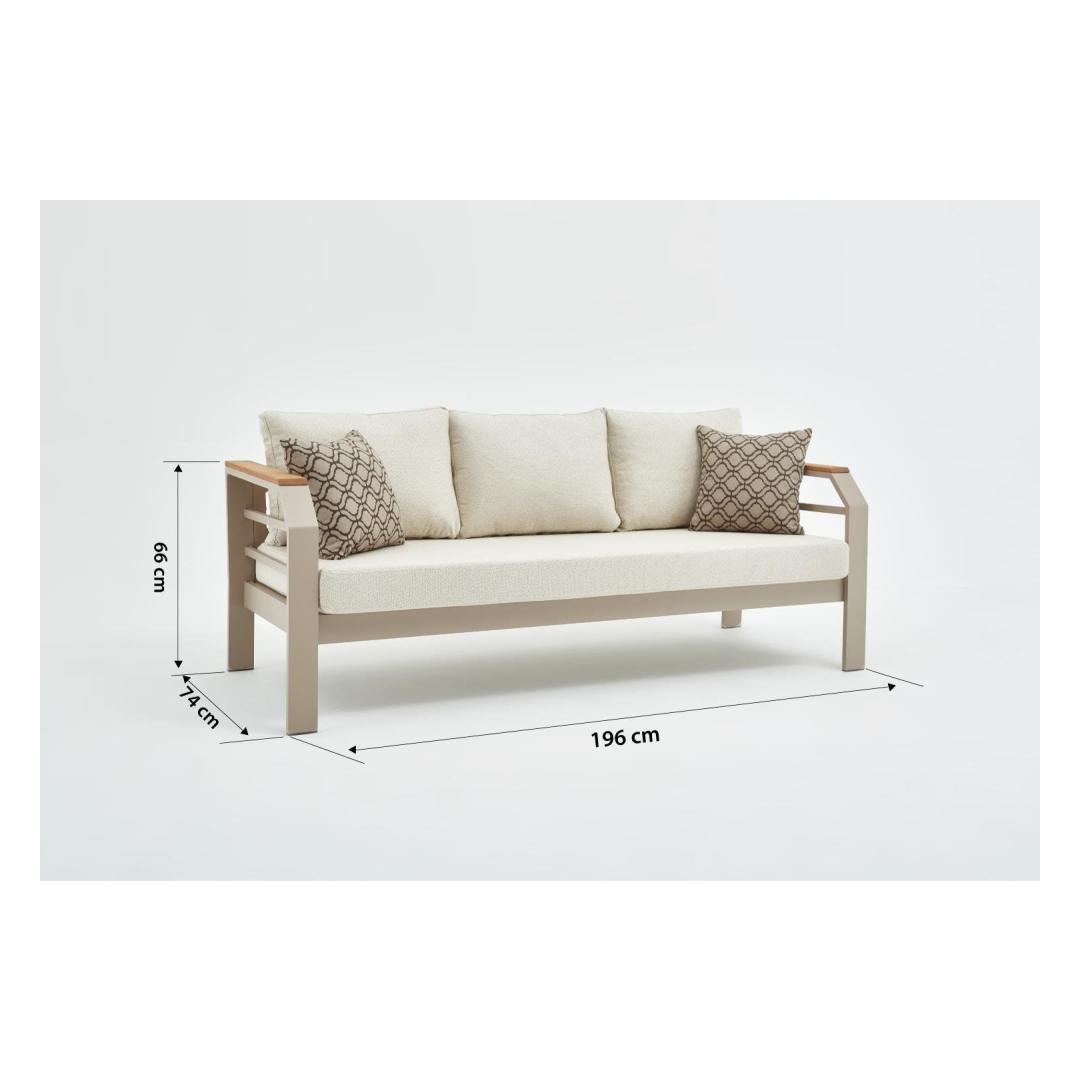 Komplekt sisaldab 3-kohalist diivanit, kahte 1-kohalist diivanit ja kohvilauda, kõik koos modernsete alumiiniumjalgadega. Beez värv lisab igale välistingimustes asuvale keskkonnale elegantsi, muutes selle ideaalseks lisandiks teie terrassile või aeda.