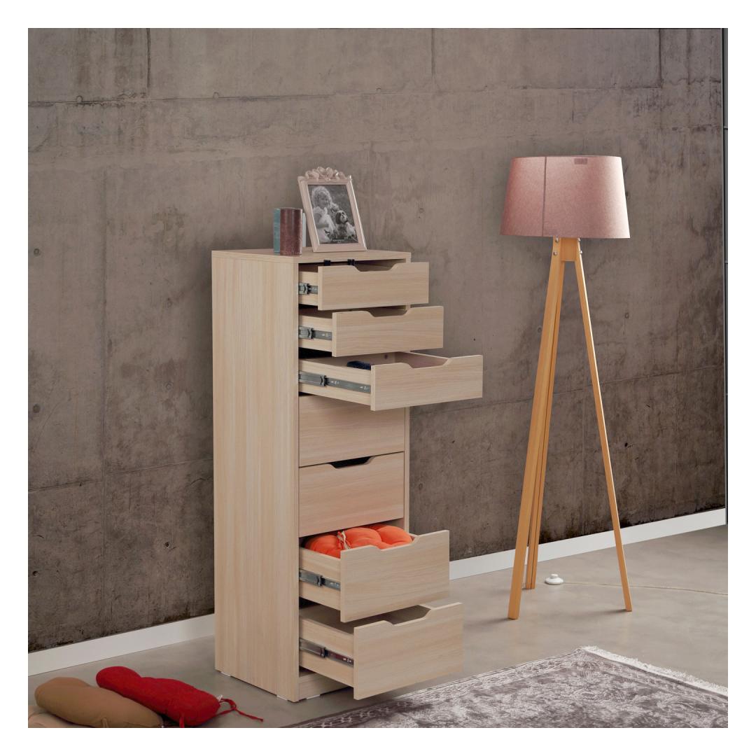 Seitsme mahuka sahtliga kapp pakub piisavalt ruumi kõigi teie asjade hoidmiseks. Alates riietest kuni aksessuaarideni pakub iga sahtli mugav ja organiseeritud lahendust, et hoida oma hädavajalikud asjad käeulatuses. Ütle hüvasti segadusele ja tere korrastatud ja organiseeritud eluruumile.