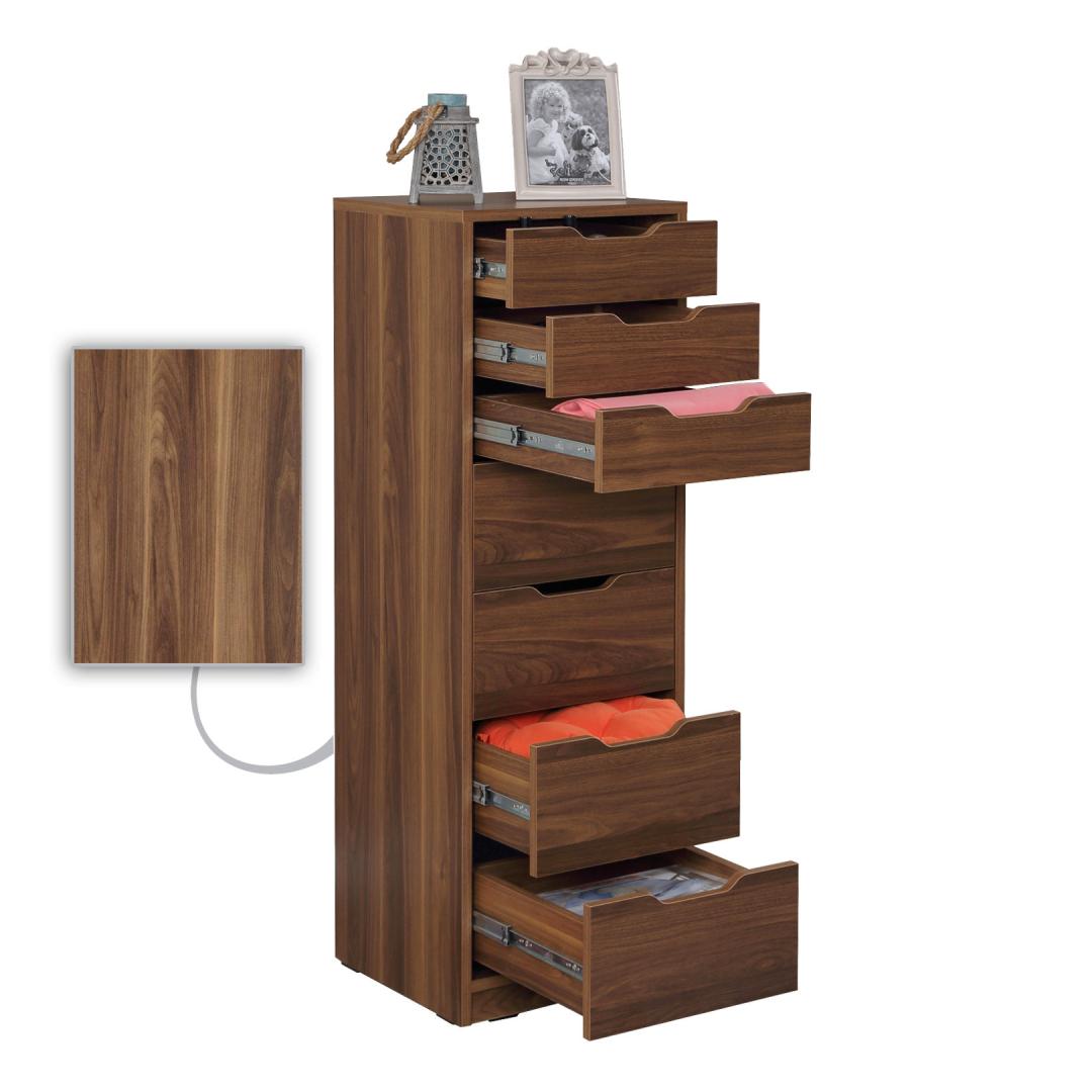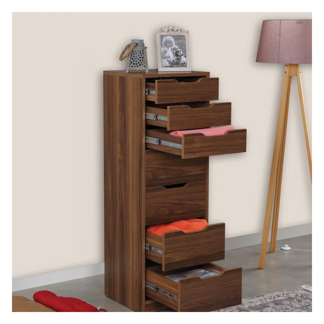 Korraldage oma asjad vaevata seitsme mahuka sahtliga, mis pakuvad piisavalt ruumi riietele, aksessuaaridele ja muule. Kapi 18 mm paksus tagab vastupidavuse, samas kui 44 cm laius, 130 cm kõrgus ja 40 cm sügavus pakuvad rohkelt ruumi kõigile vajalikele asjadele.