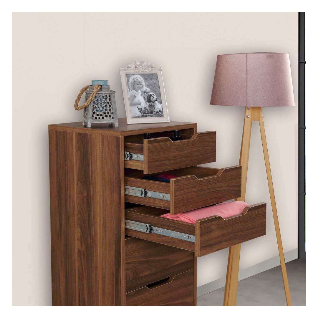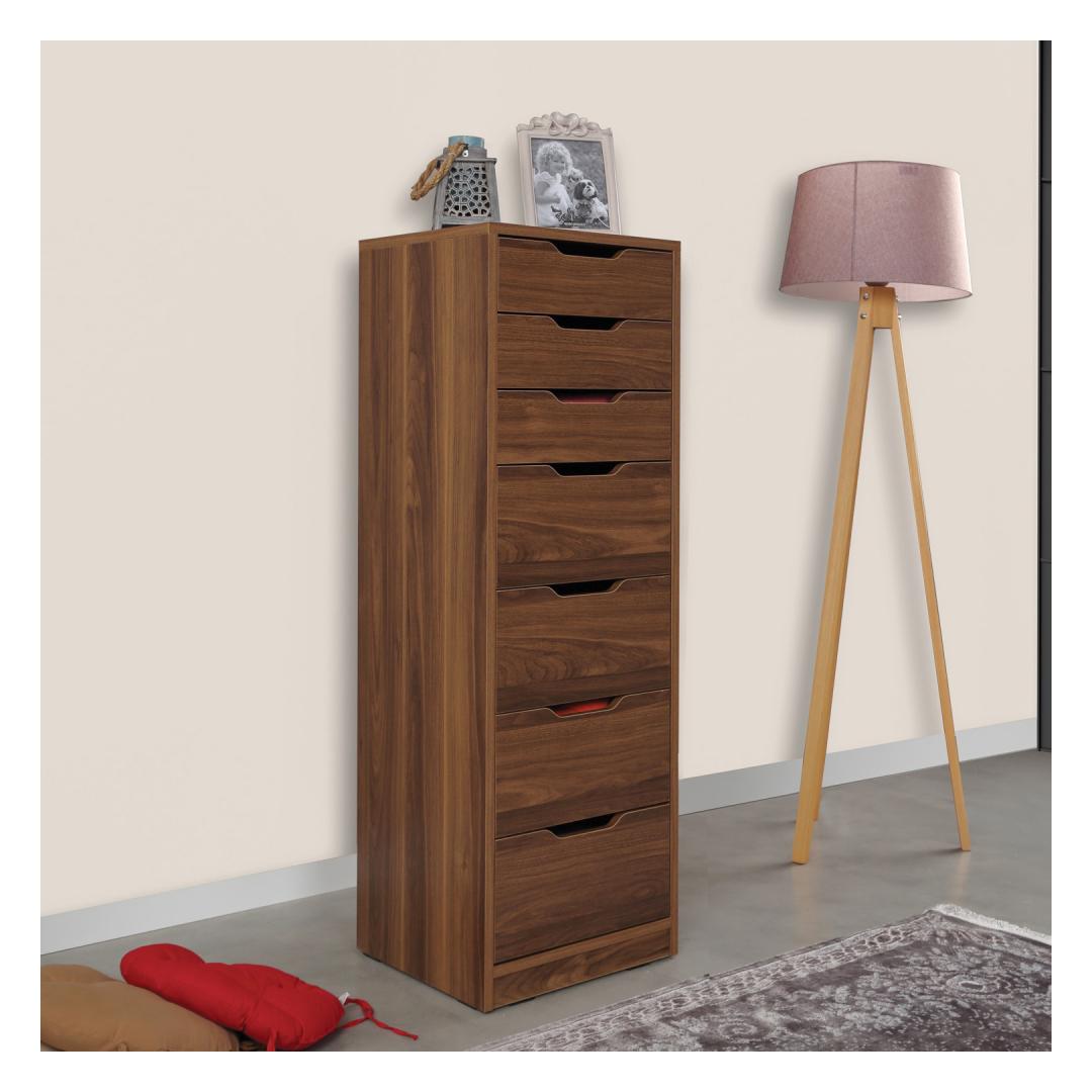 Sukelduge selle massiivse pähklipuu värvi võlu, lisades igasse ruumi elegantsi. Tänu oma elegantsele ja kompaktsele disainile sobib see kapp vaevata igasse ruumi, mistõttu sobib see ideaalselt korterisse, magamistuppa või isegi garderoobi.