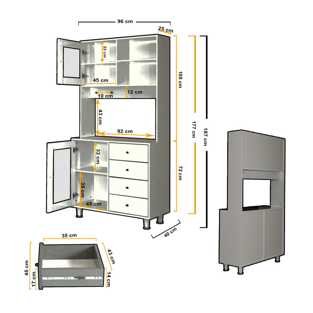 96 cm laiuse, 187 cm kõrguse ja 40 cm sügavusega kapp pakub piisavalt hoiuruumi kõigile teie asjadele. Keskmine riiuli kõrgus 43 cm võimaldab hõlpsasti organiseerida eri suurusega esemeid. Jalad on 10 cm kõrged, mis annavad kapile stabiilsuse ja stiili.