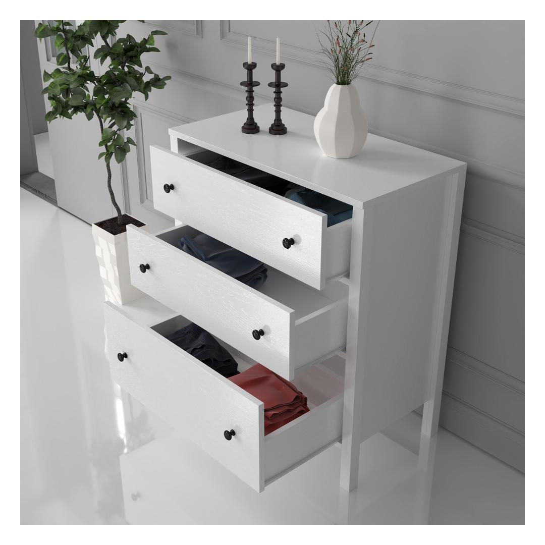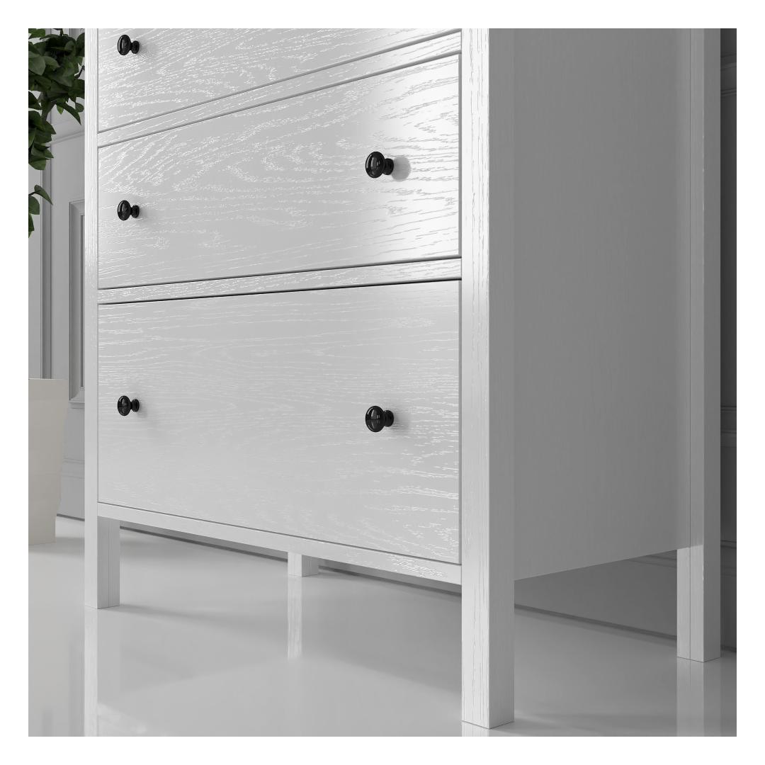 Selle elegantse disainiga kapp sulandub vaevata mis tahes sisustusstiiliga, alates modernsest kuni traditsioonilise sisustamiseni. Puidust ja valgest värvist koosnev kombinatsioon loob ajatu välimuse, mis ei lähe kunagi moest välja. Metallist käepidemed lisavad glamuuri, muutes selle kapi igas toas väljapaistvaks esemeks.