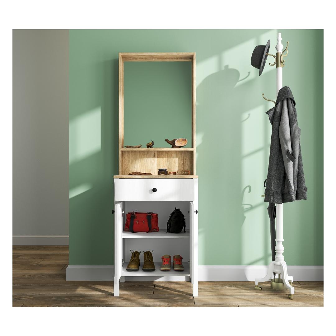 Valmistatud 100% melamiinkattega puitlaastplaadist, on see halli stand mitte ainult elegantne, vaid ka uskumatult vastupidav. 18mm paksus tagab, et see talub igapäevast kulumist, samas kui 0,8mm servakate lisab veidi rafineeritust.