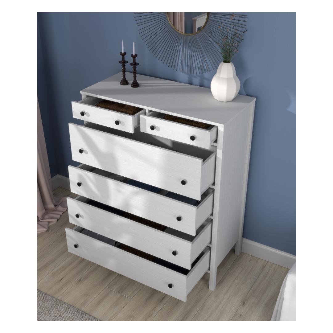 Paljude riiulite ja piisava hoiuruumiga võimaldab see kummut hoida teie riideid, aksessuaare ja isiklikke esemeid organiseerituna ja kergesti ligipääsetavana. Kummut saab ka seina külge kinnitada, et tagada lisastabiilsus ja ohutus.