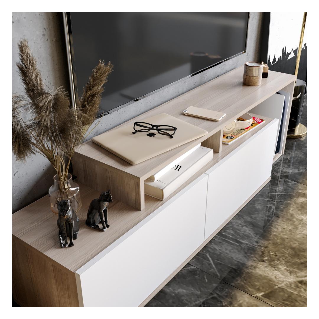 See 100% melamiiniga kaetud puitlaastplaadist valmistatud teleritugi on ehitatud nii, et see peab vastu. 18 mm paksus tagab vastupidavuse ja tugevuse, pakkudes usaldusväärset tuge teie televiisorile. Võite olla kindel, et teie investeering sellesse telerialusesse teenib teid aastaid.