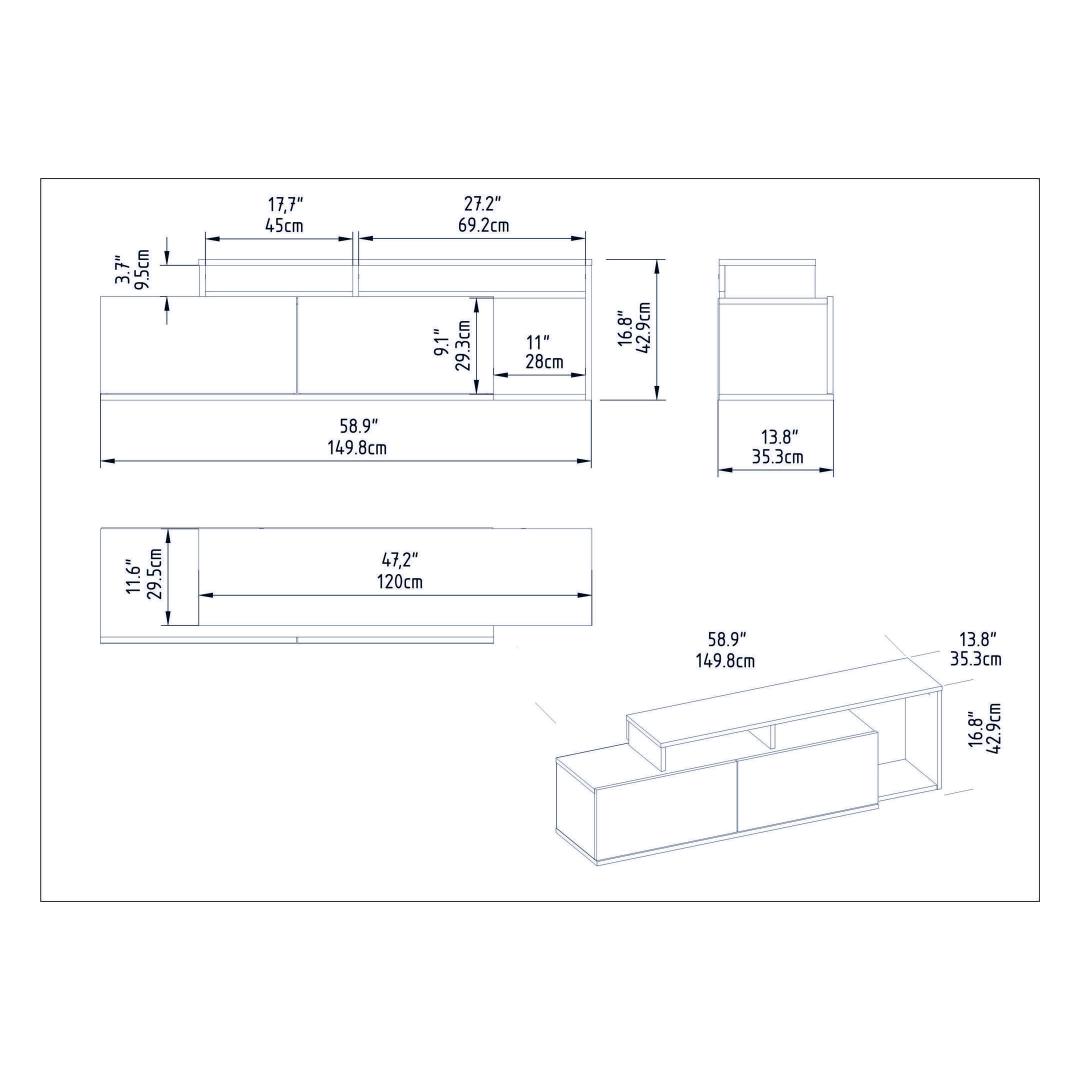 Meie televiisoripult ei ole mitte ainult stiilne, vaid ka praktiline. Selle kompaktsed mõõtmed 149. 8 cm laius, 42. 9 cm kõrgus ja 35. 3 cm sügavus muudavad selle ideaalseks väiksematesse eluruumidesse. Lisaks saab seda hõlpsasti seinale kinnitada, säästes väärtuslikku põrandapinda ja luues teie tuppa avatuma ja avarama tunde.
