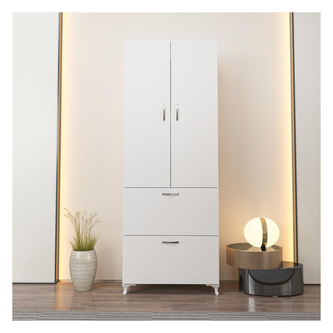 Mitmeotstarbeline kapp on lihtsa, soliidse valge värviga, mis õhkab rahulikkust ja rafineeritust. Kui soovite luua rahustavat atmosfääri oma magamistoas või minimalistlikku välimust oma elutoas, on see kapp ideaalne valik. Selle stiilne disain sulandub sujuvalt mis tahes sisustusega, muutes selle teie kodu mitmekülgseks täienduseks.