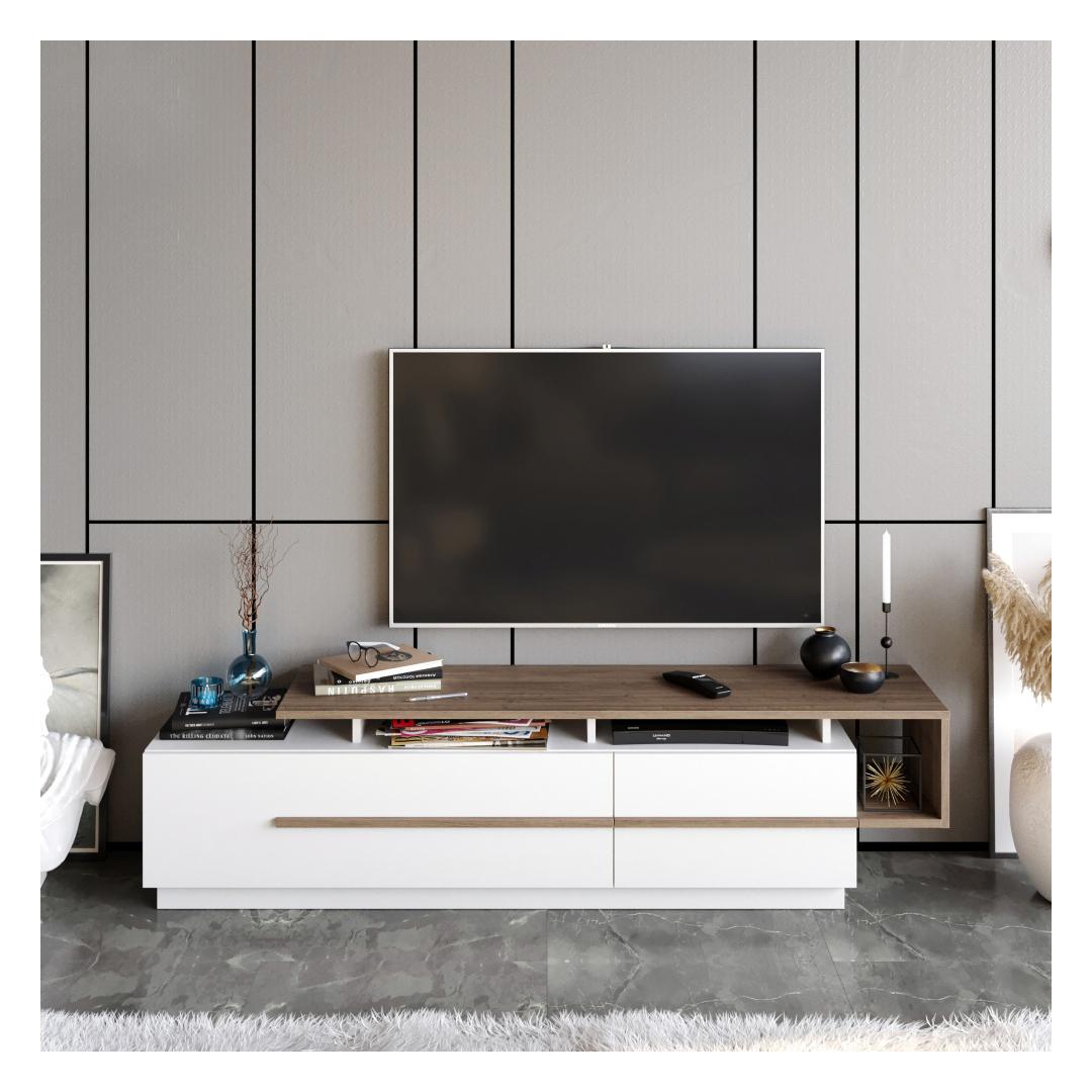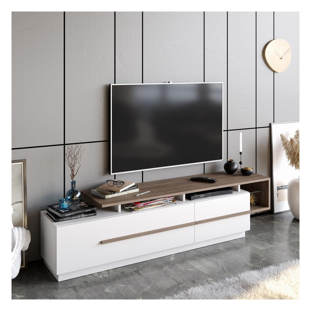 See teleritugi ei paku mitte ainult rohkelt hoiuvõimalusi, vaid on ka uskumatult mitmekülgne. Tänu 180 cm laiusele mahutab see eri suurusega telereid, mistõttu sobib see teie kodu igasse tuppa. Lisaks saab seda hõlpsasti seinale kinnitada, mis tagab stabiilsuse ja ohutuse.