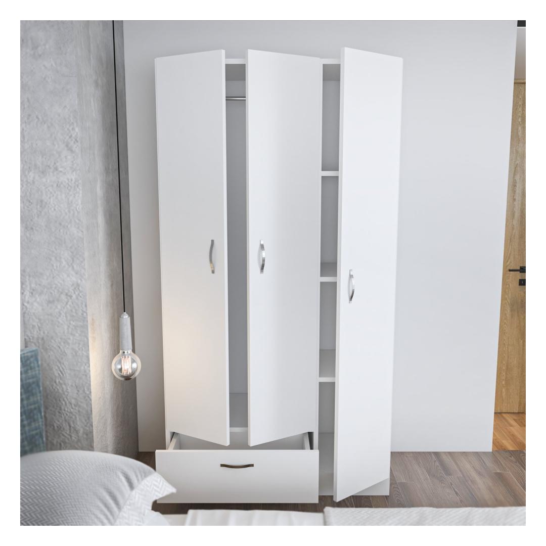 Oma elegantse ja moodsa disainiga lisab see garderoobikapp igasse ruumi elegantsust. Lihtne, soliidne valge värvus loob puhta ja värske välimuse, muutes selle ideaalseks täienduseks teie magamistoa sisustusele.
