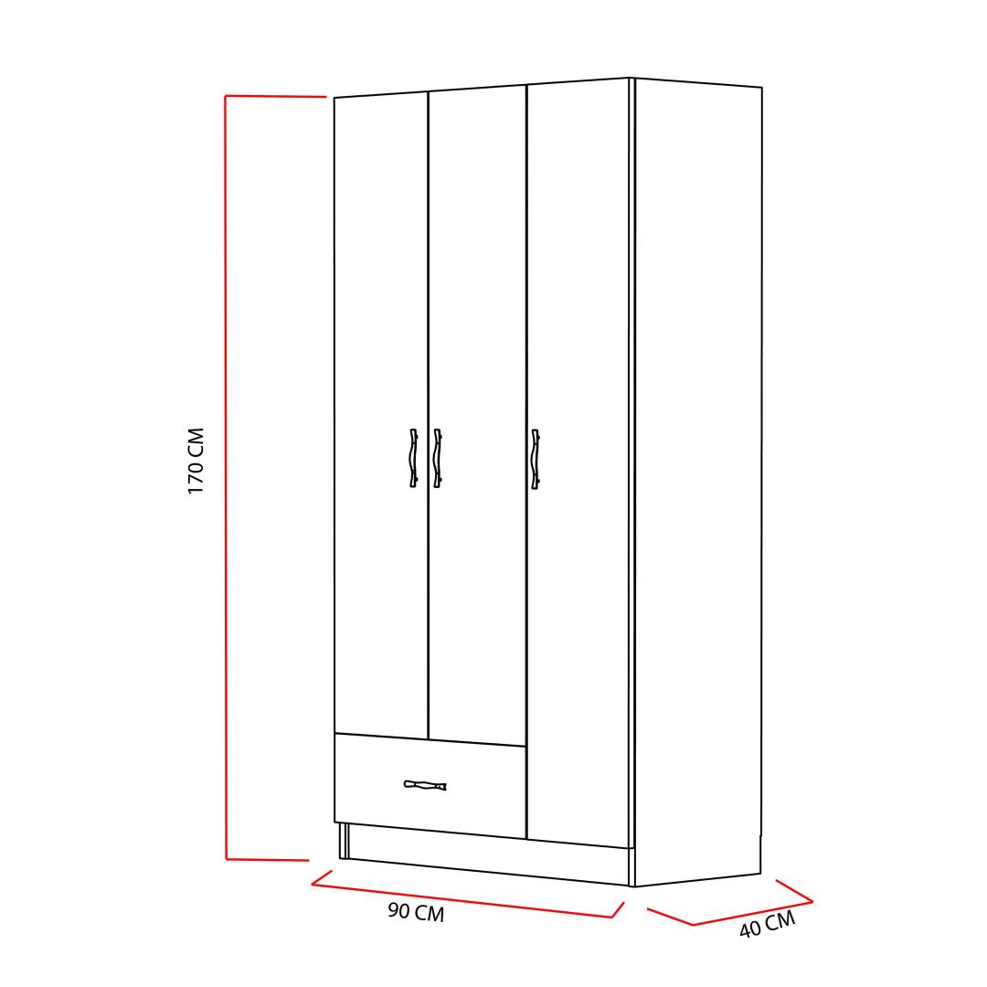Seda garderoobikappi saab hõlpsasti seinale kinnitada, pakkudes stabiilsust ja turvalisust. Tänu kompaktsele suurusele, mille laius on 90 cm, kõrgus 170 cm ja sügavus 40 cm, sobib see igasse ruumi, isegi piiratud ruumiga.