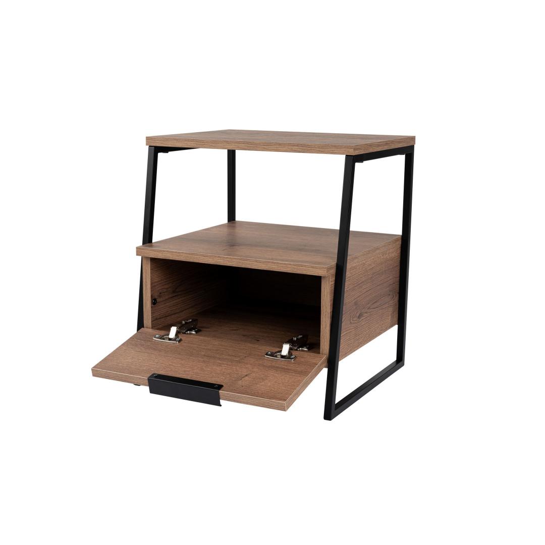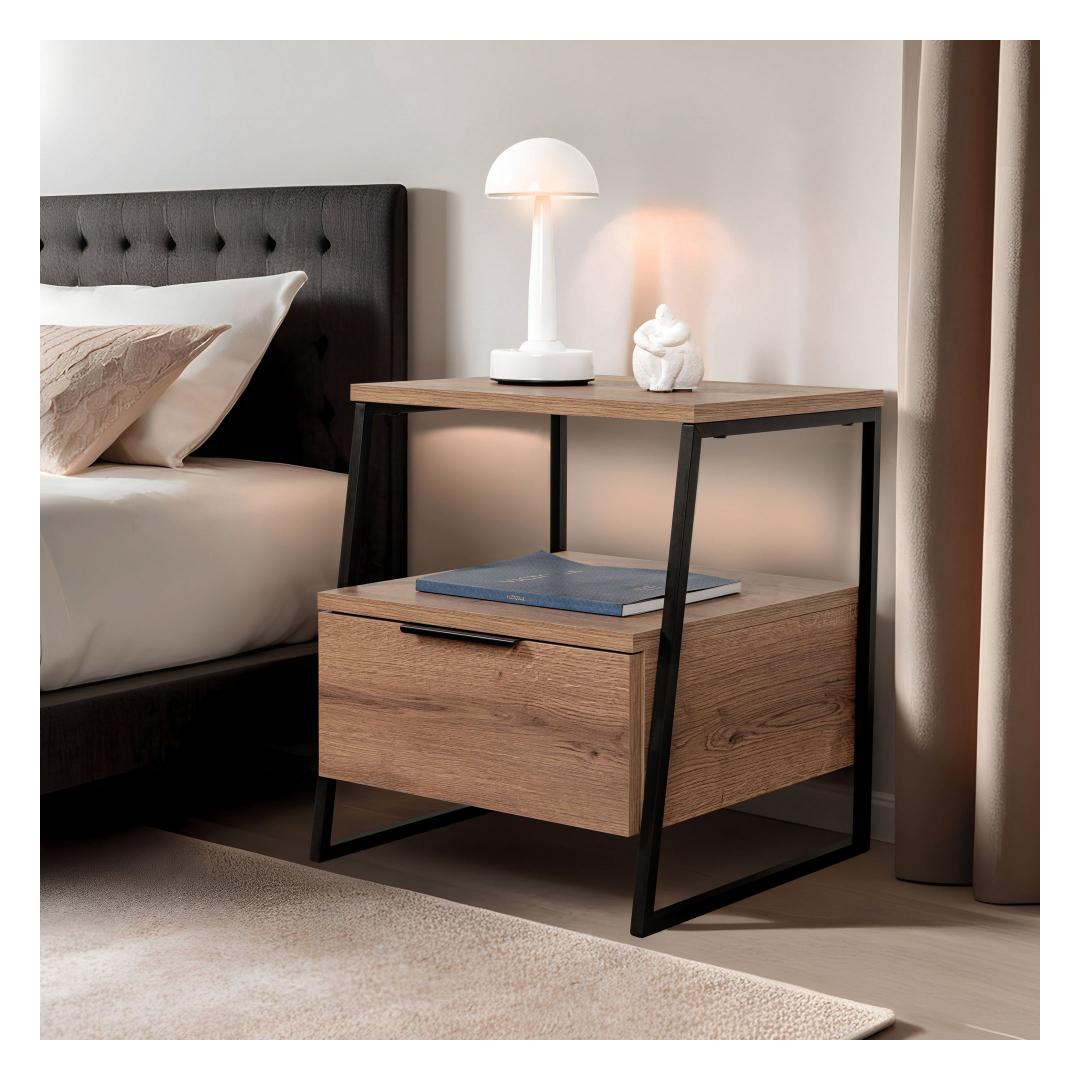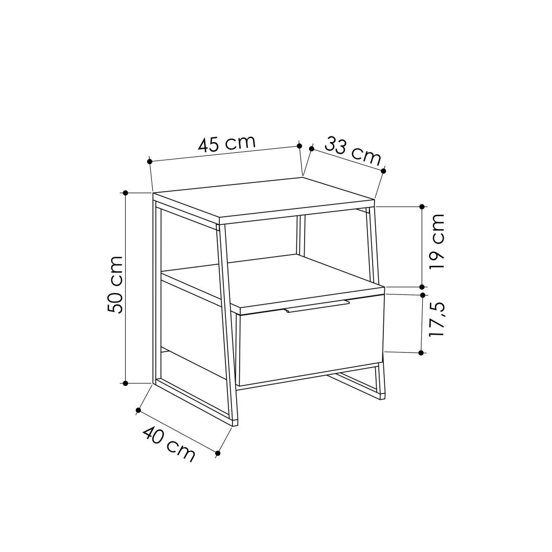 See öökapp on ehitatud 100% melamiiniga kaetud osakeste tahvlilt. 18 mm paksus tagab stabiilsuse ja vastupidavuse, samas kui 45 cm laius, 50 cm kõrgus ja 40 cm sügavus tagavad rohkesti salvestusruumi. 19 cm riiuli kõrgus võimaldab teil oma olulisi asju hõlpsalt korraldada.