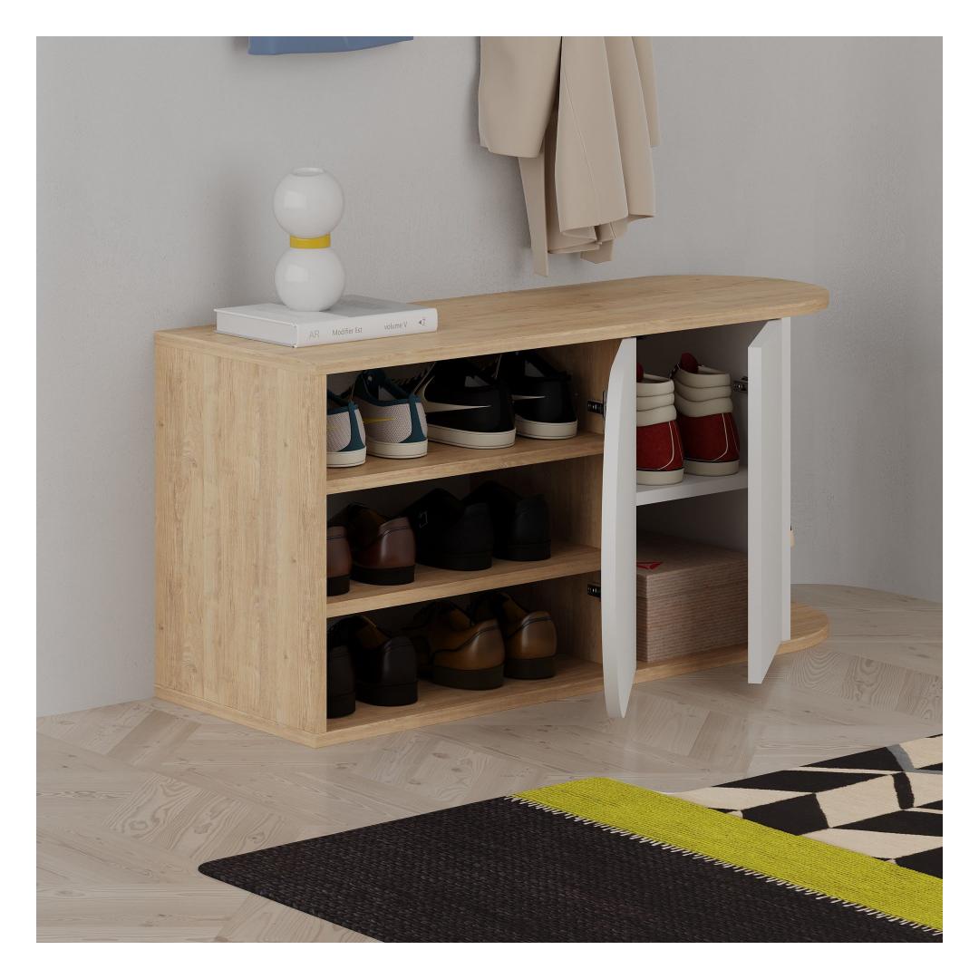 Kas olete väsinud oma esikusse laiali pillutatud kingade üle komistamisest? jätke hüvasti segadusega ja tervitage organiseerimist meie uimastava tamme ja valge kingakapiga. See stiilne ja moodne ese mitte ainult ei hoia teie kingi korralikult paigas, vaid lisab ka elegantsi teie kodu sisustusele.