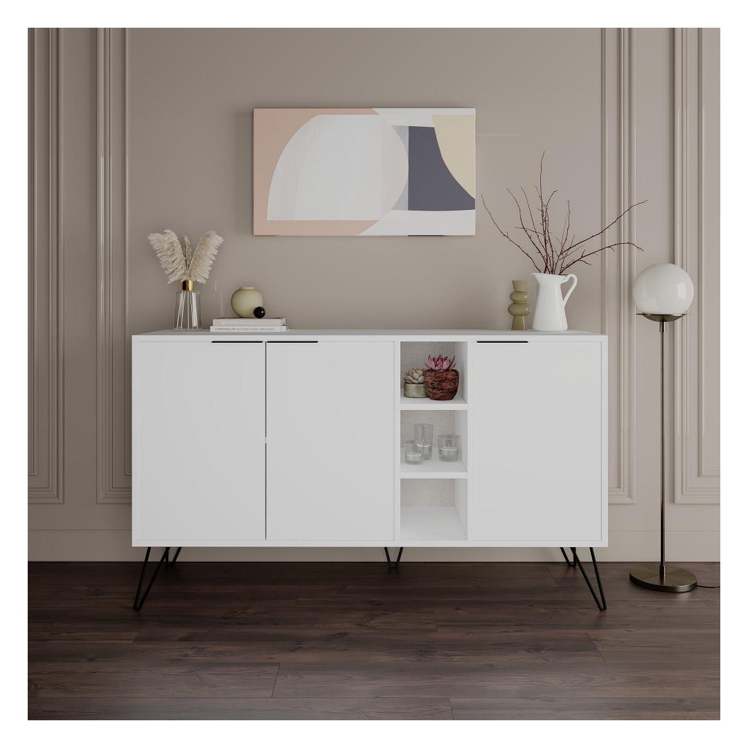 Muuda oma eluruumi meie hämmastava modernse konsooliga, mis on valmistatud 100% melamiiniga kaetud puitlaastplaadist, et tagada vastupidavus ja stiil. Sujuv disain ja valge värv muudavad selle mitmekülgseks tükiks, mis tõstab esile iga ruumi sinu kodus.