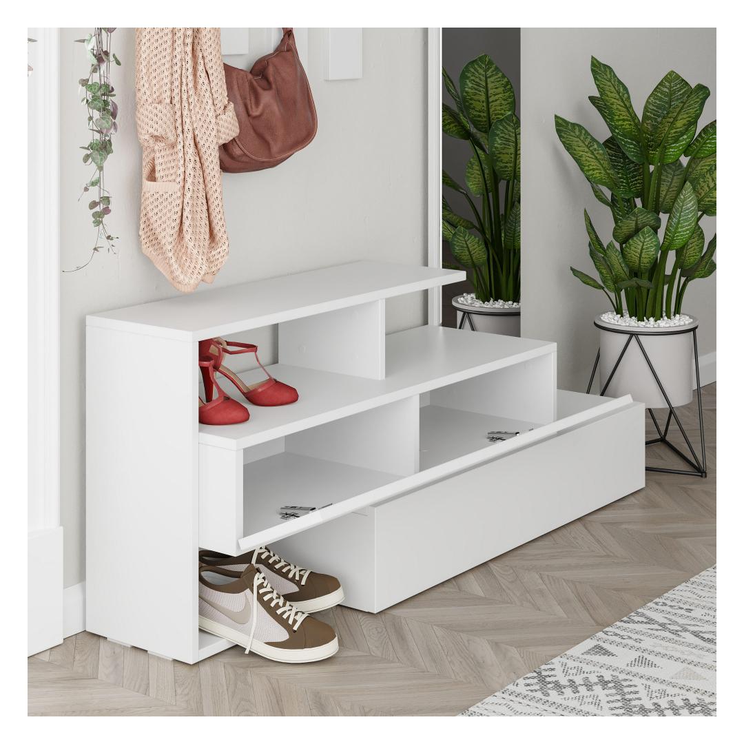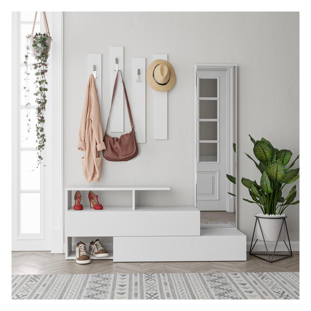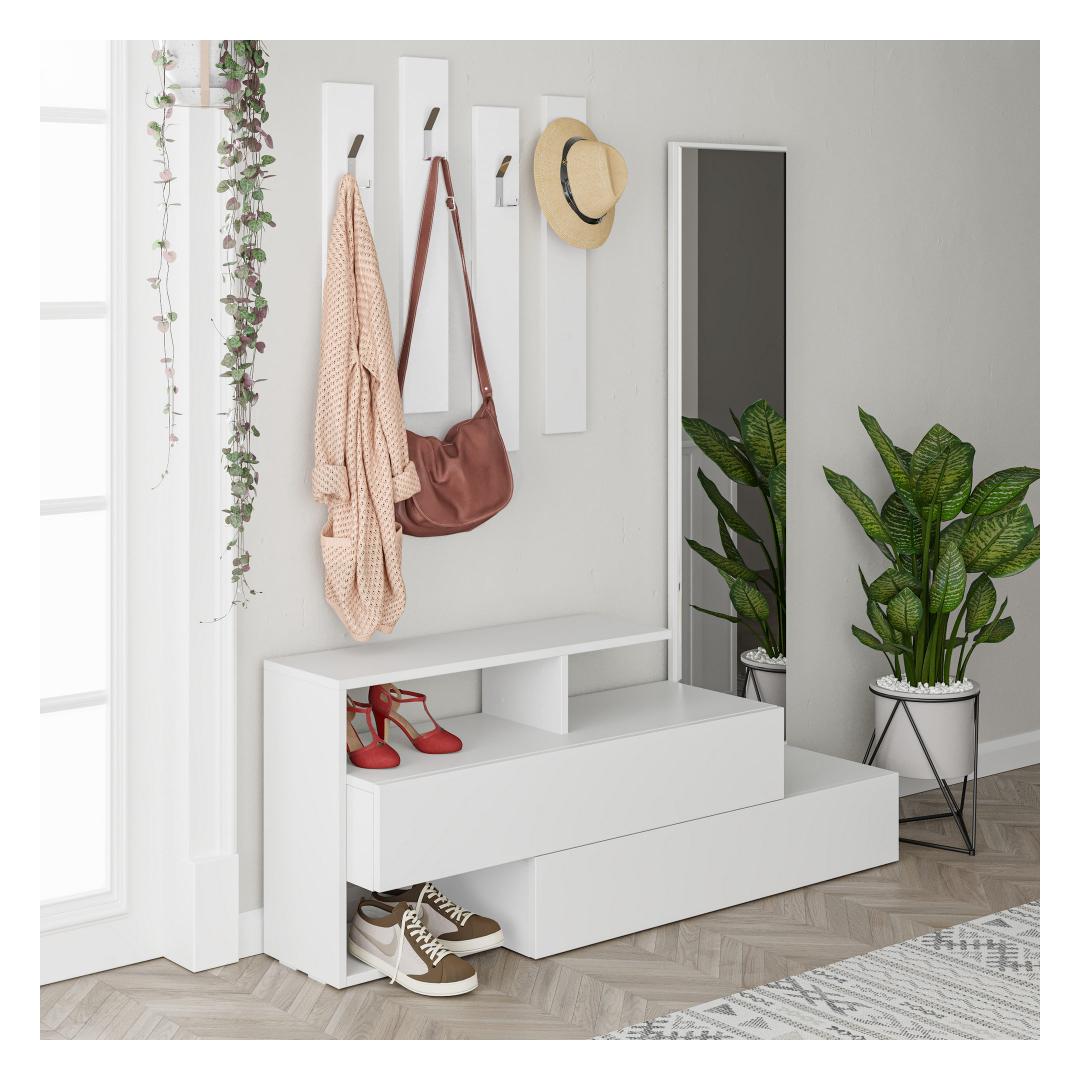 Selle 100% melamiinkattega puitlaastplaadi konstruktsiooniga Hall Stand on mitte ainult vastupidav, vaid ka uskumatult stiilne. Puhtad jooned ja ühtlane valge värv muudavad selle mitmekülgseks, mis sobib igasse sisustusse.