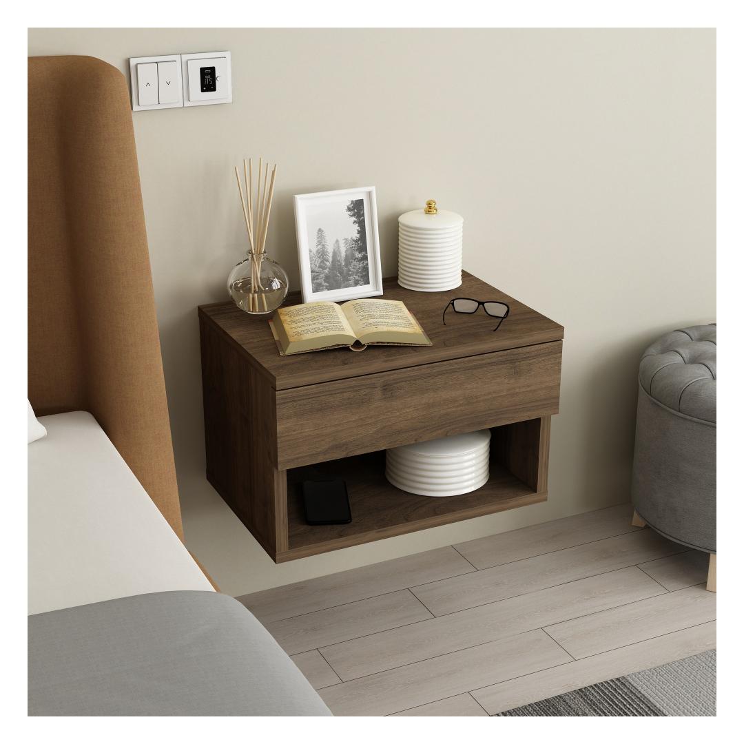 Lisa oma magamistuppa natuke rafineeritust selle stiilse ja modernse öökapiga. Pähklipuu värv lisab soojust ja sügavust sinu ruumile, luues kutsuva atmosfääri, kuhu on hea naasta.