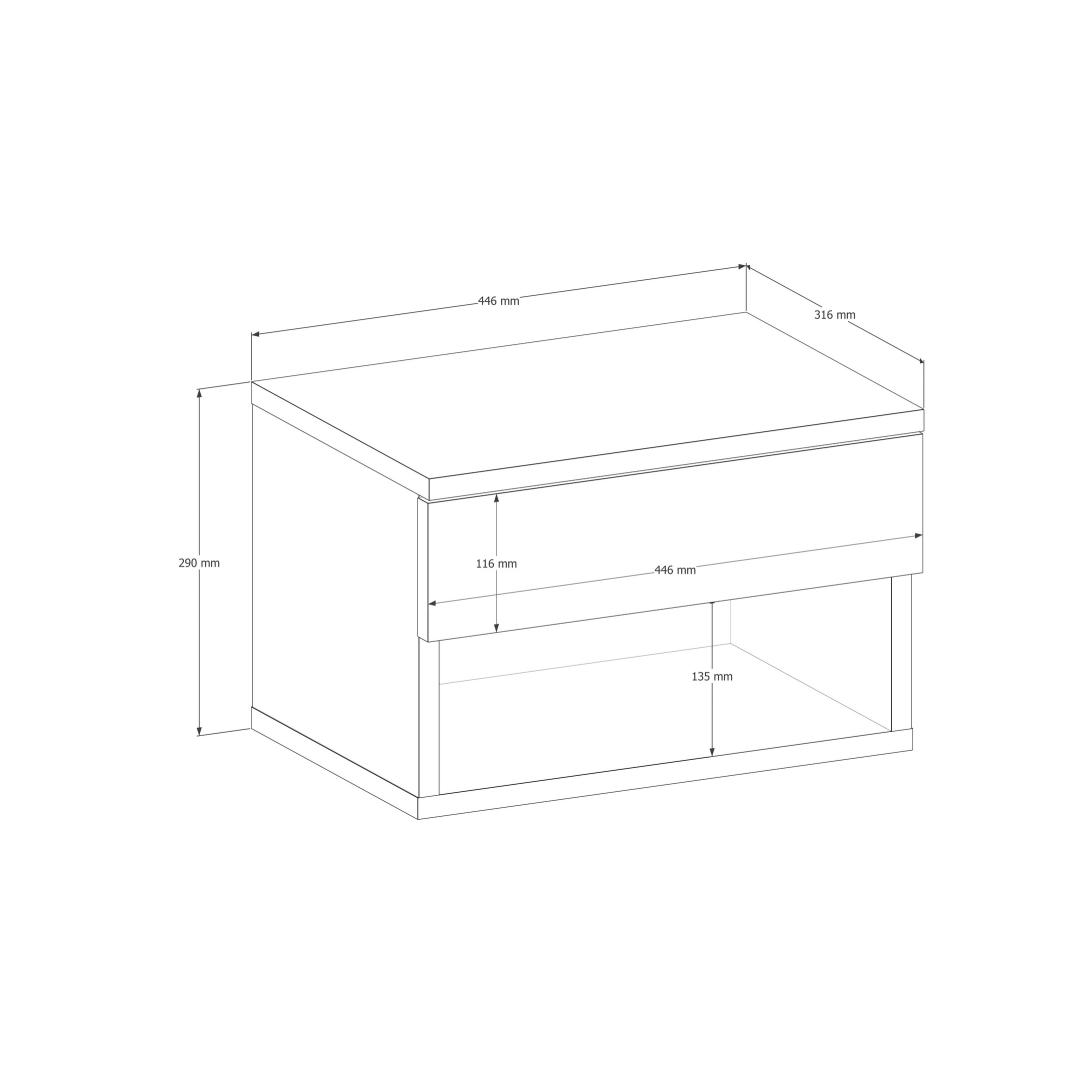 Selle kompaktse suuruse ja piisava hoiuruumiga on see öökapp ideaalne, et hoida oma öösel vajalikud asjad käeulatuses. Puitlaastplaadi konstruktsioon tagab vastupidavuse ja pikaealisuse, samas kui võimalus kinnitada see seina külge lisab stabiilsust ja turvalisust.