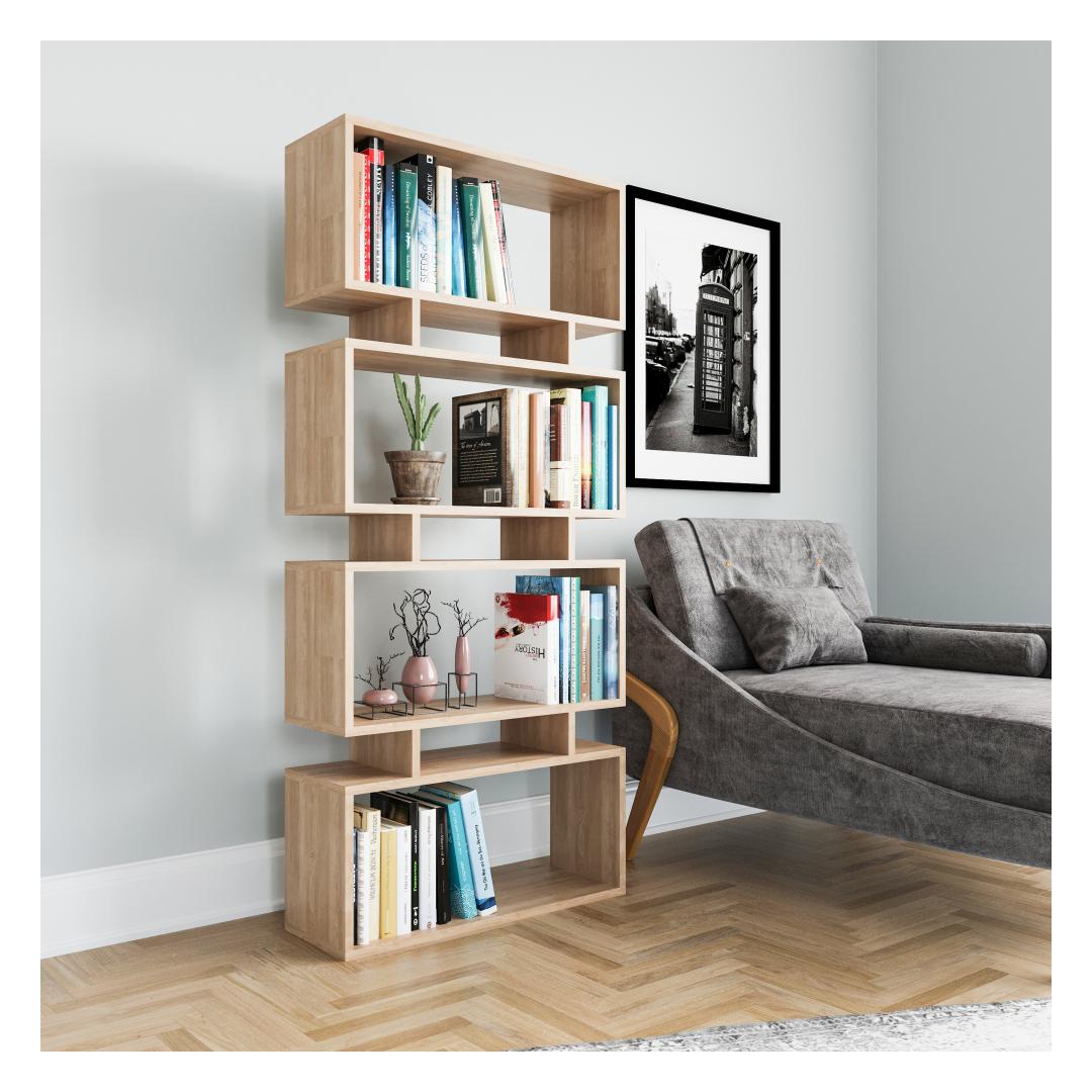 Meie tammepuust raamaturiiuli ühevärviline ja moodne-uuenduslik disain inspireerib teie loovust ja võimaldab teil näidata oma unikaalset stiili. Selle skandinaavia ja kooli inspiratsiooniga kontseptsioon lisab igasse ruumi rafineeritust, muutes selle mitmekülgseks esemeks, mis täiendab mis tahes sisekujundust.