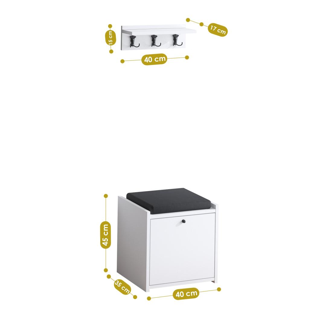 40 cm laiuse, 45 cm kõrguse ja 35 cm sügavusega ruumikas kapis on piisavalt ruumi oma hädavajalike asjade hoidmiseks. 40 cm laiune, 15 cm kõrge ja 17 cm sügavune seinariiul pakub täiendavaid hoiu- ja väljapanekuvõimalusi.