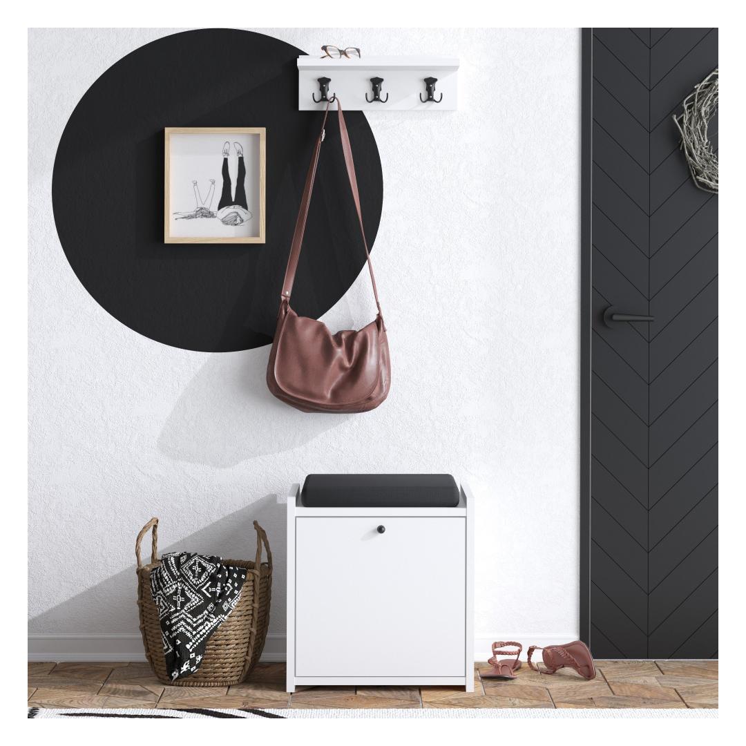 Esikuhoidja on kaunist valget värvi, mis lisab teie esikusse elegantsust ja elegantsust. Selle stiilne ja minimalistlik disain täiendab vaevata mis tahes interjööri stiili, muutes selle teie kodu mitmekülgseks täienduseks.