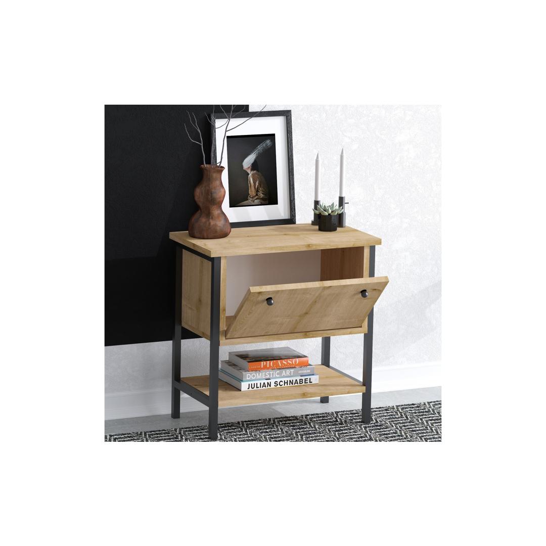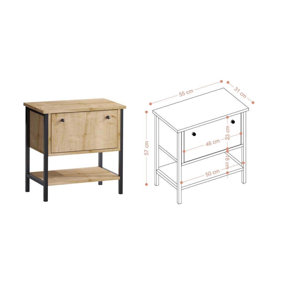 Selle arvukate riiulite abil pakub see öökapp piisavalt hoiuruumi kõigi sinu öösel vajalike asjade jaoks, hoides sinu magamistoa korras ja puhtana. Metalljalad lisavad kaasaegset puudutust, samas kui võimalus see seina külge kinnitada tagab stabiilsuse ja ohutuse. Olgu sul vaja mugavat kohta lampi, raamatute või äratuskella jaoks, see öökapp katab kõik sinu vajadused.