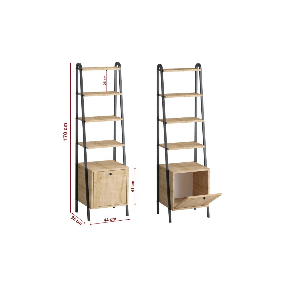 Ütle hüvasti segaste raamatuhunnikute ja tere kaunilt korraldatud ruumile meie stiilse raamatukapiga. Mitme riiuliga ja tugeva konstruktsiooniga on see raamatukapp ideaalne, et esitleda oma lemmiklugusid ja dekoratiivseid esemeid stiilselt. Kaasaegne disain ja metalljalad lisavad igasse ruumi elegantsi, muutes selle ideaalseks lisandiks sinu kodu sisustusse.