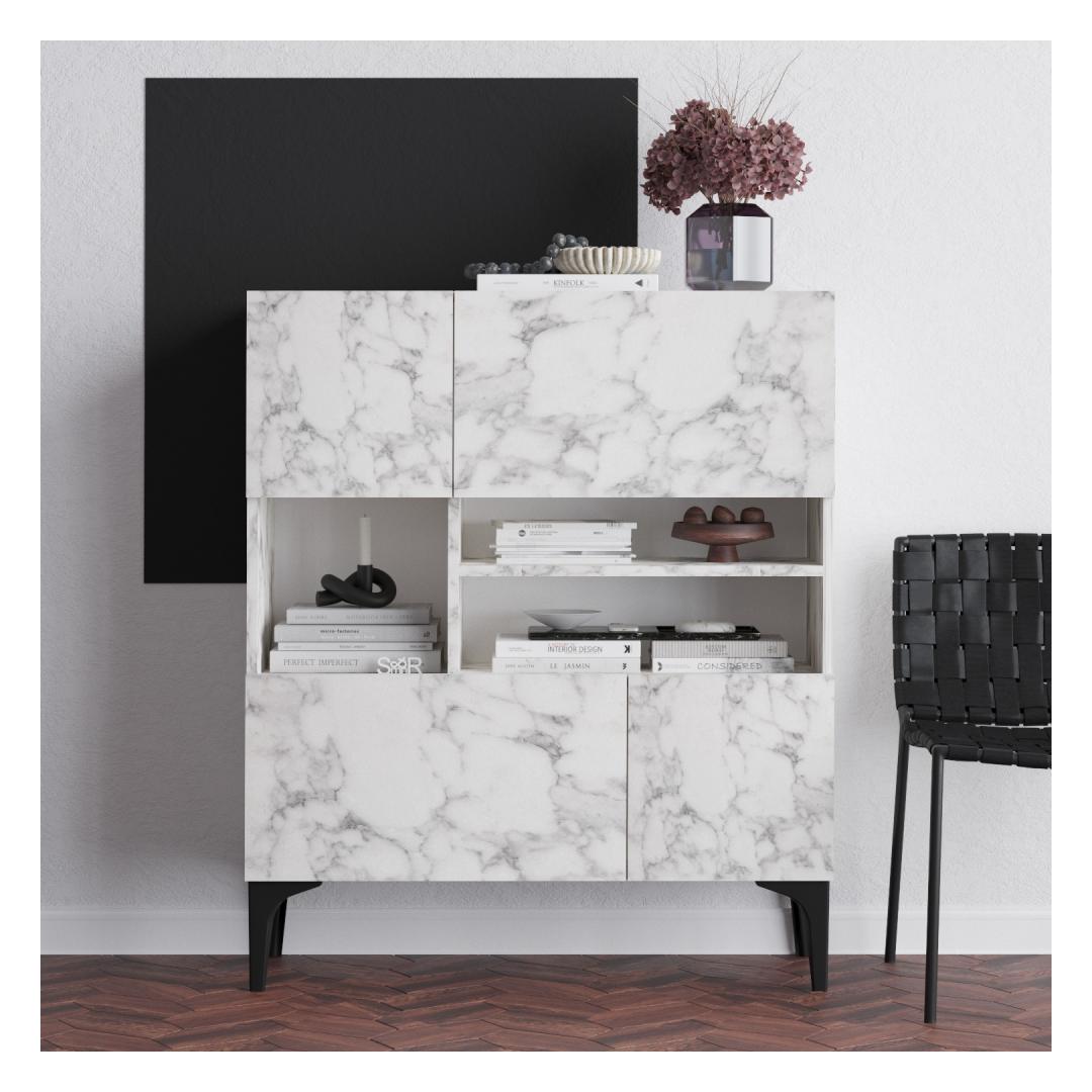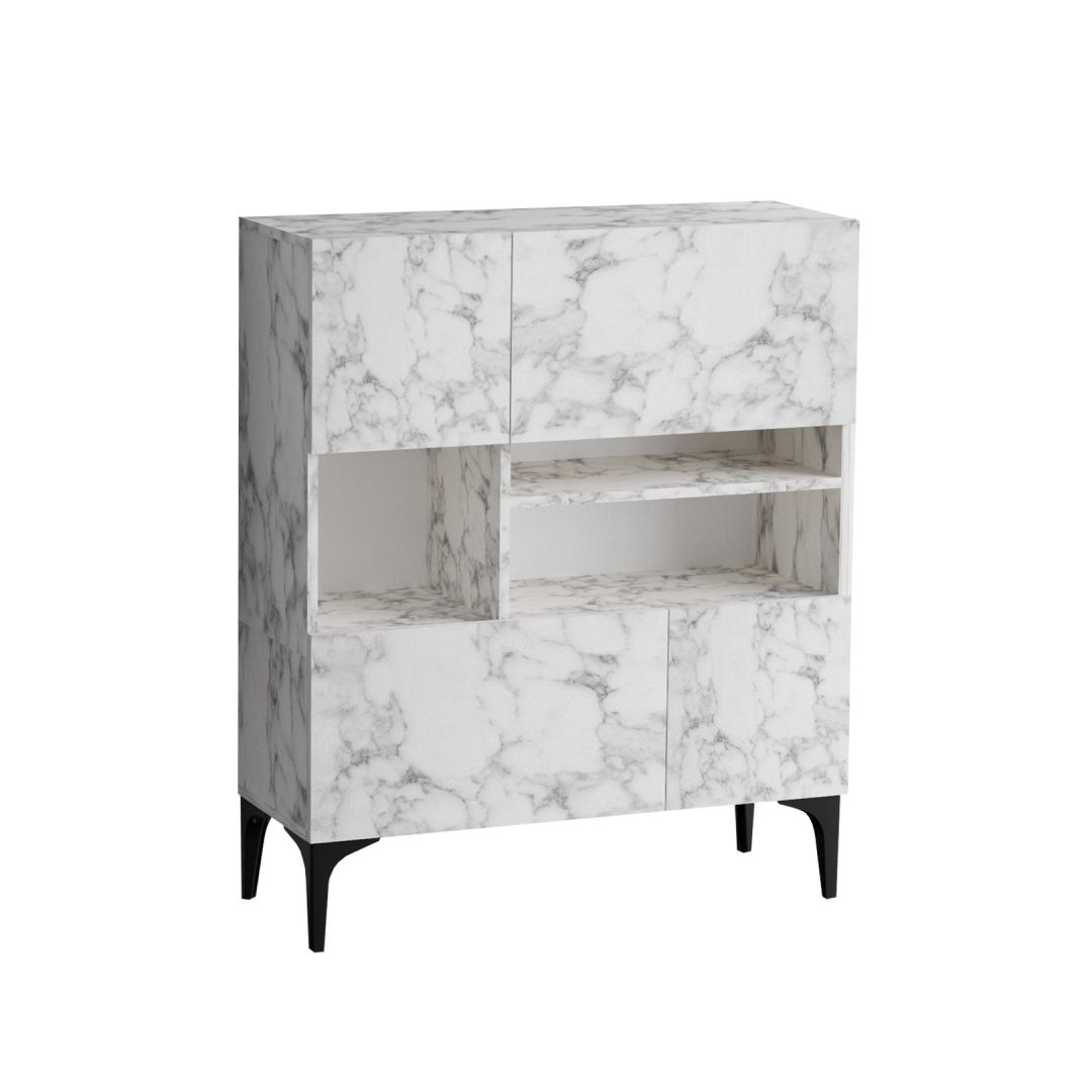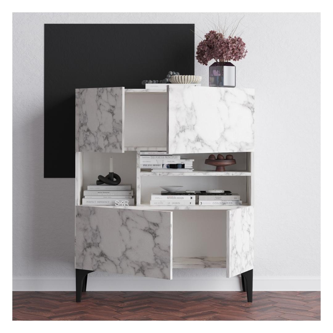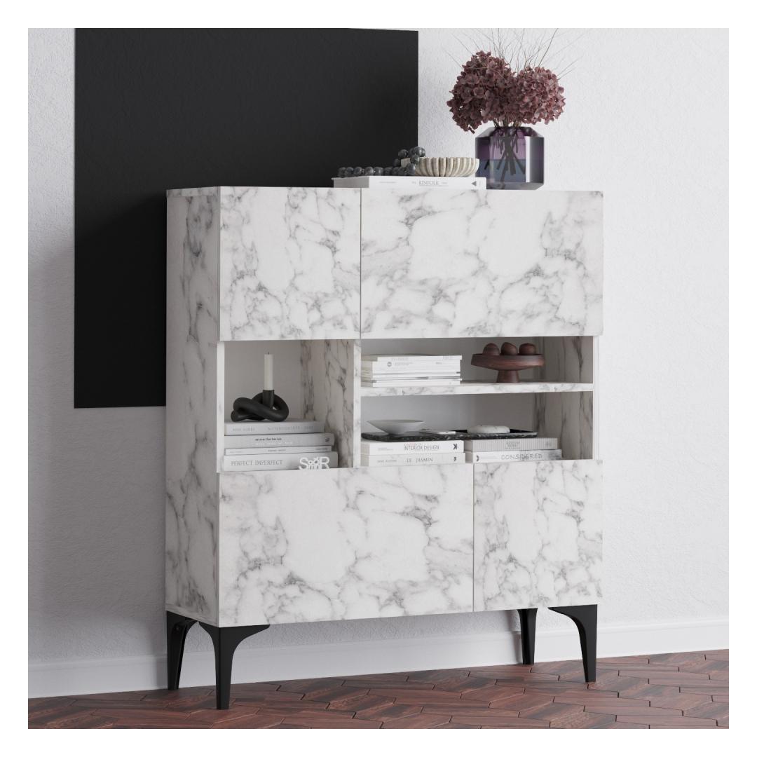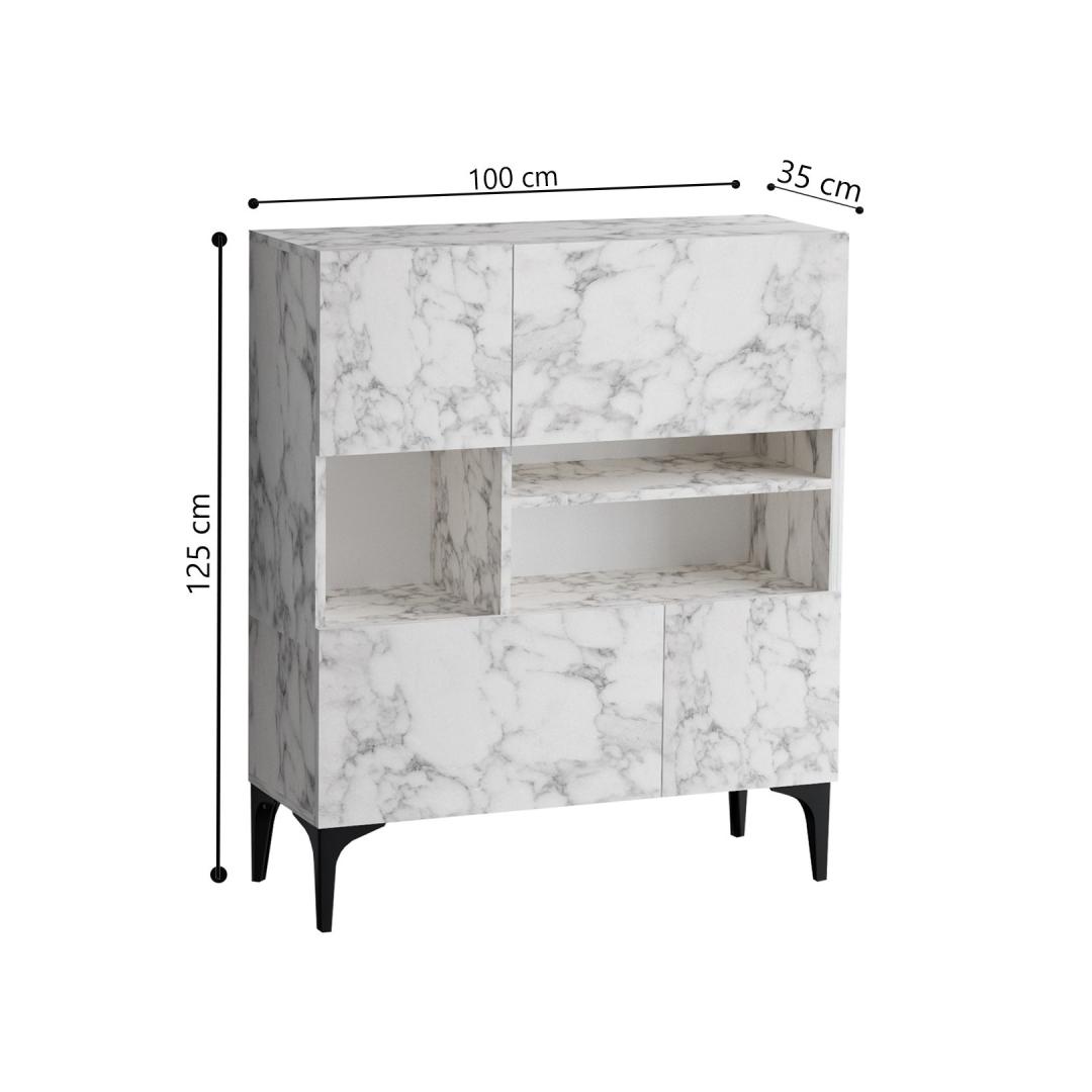 Muuda oma eluruum meie uimastava carrara marmorist konsooliga. See peen tükk on valmistatud 100% melamiiniga kaetud puitlaastplaadist, mis tagab vastupidavuse ja pikaealisuse. Selle elegantse disaini ruumikas 100 cm laius, 35 cm kõrgus ja 125 cm sügavus pakub piisavalt ruumi teie lemmiktoodete hoiustamiseks ja esitlemiseks.