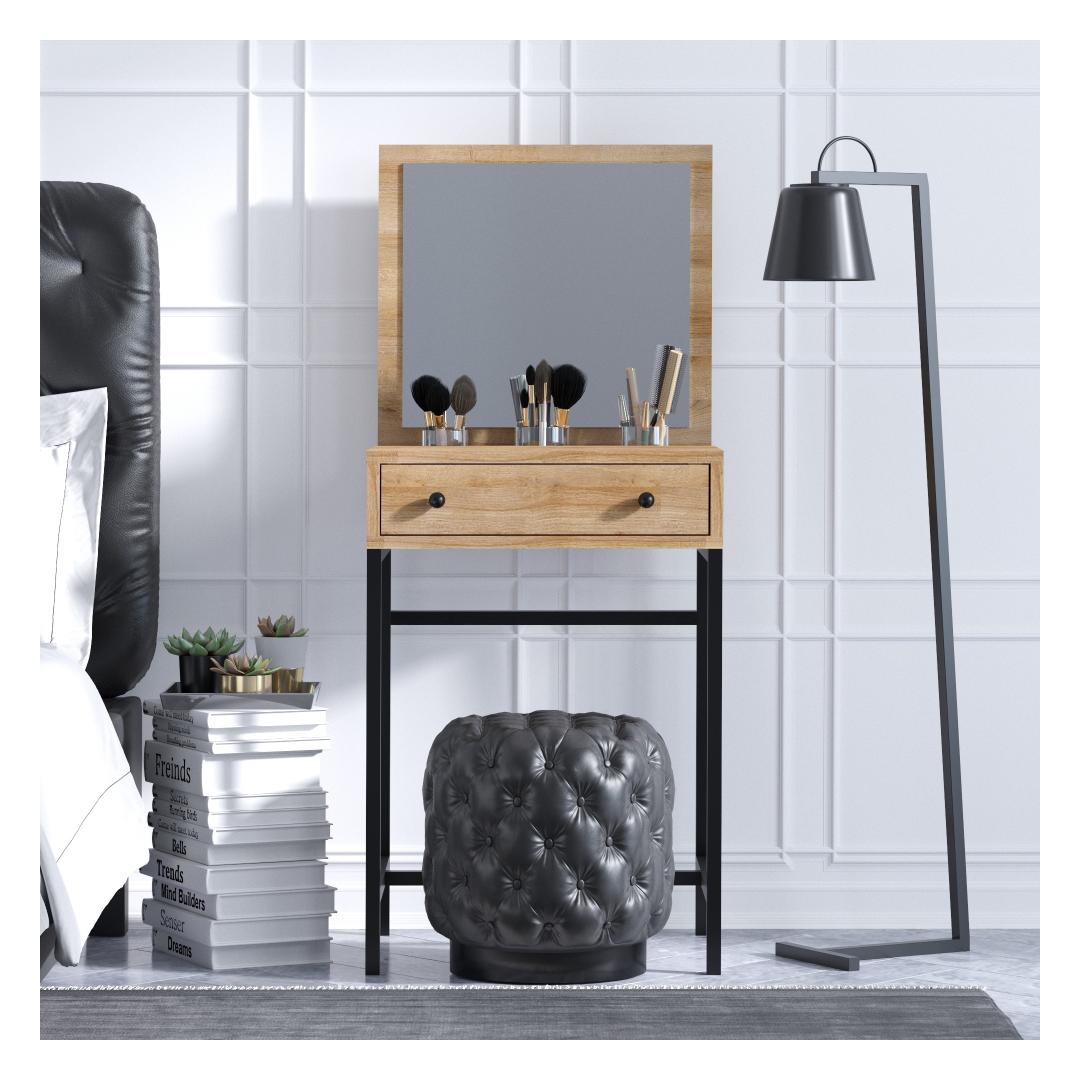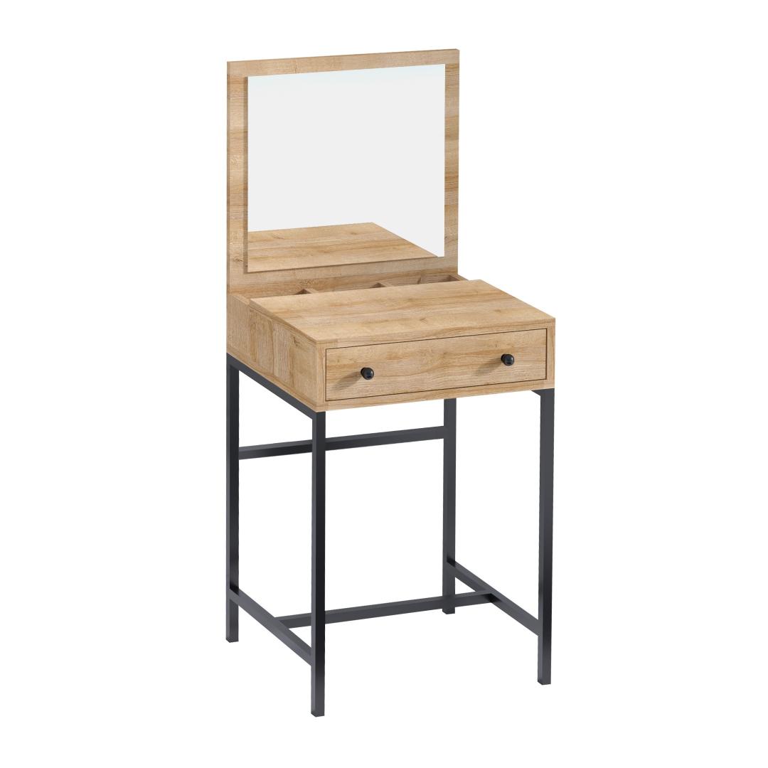See 100% melamiiniga kaetud puitlaastplaadist valmistatud meigelaud õhkab elegantsust ja elegantsust. 18 mm paksus tagab vastupidavuse ja pikaealisuse, nii et saate sellest esemest rõõmu tunda aastaid. Metallist jalad lisavad tööstuslikku võlu, samal ajal kui tamme ja musta värvi kombinatsioon lisab igasse ruumi kaasaegset hõngu.
