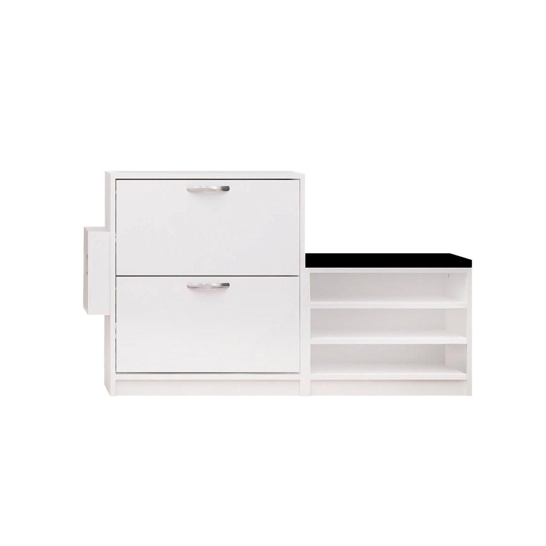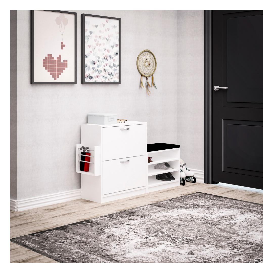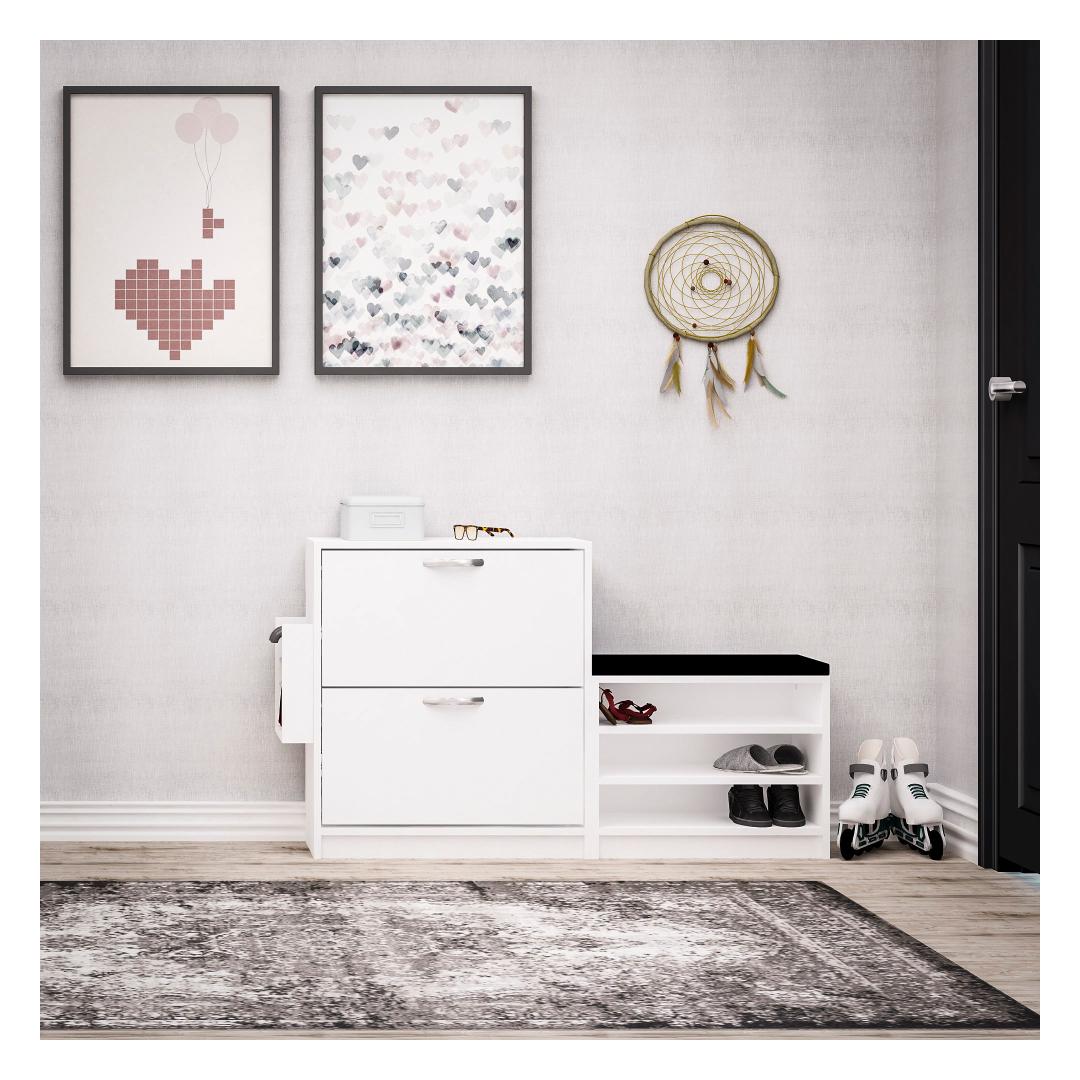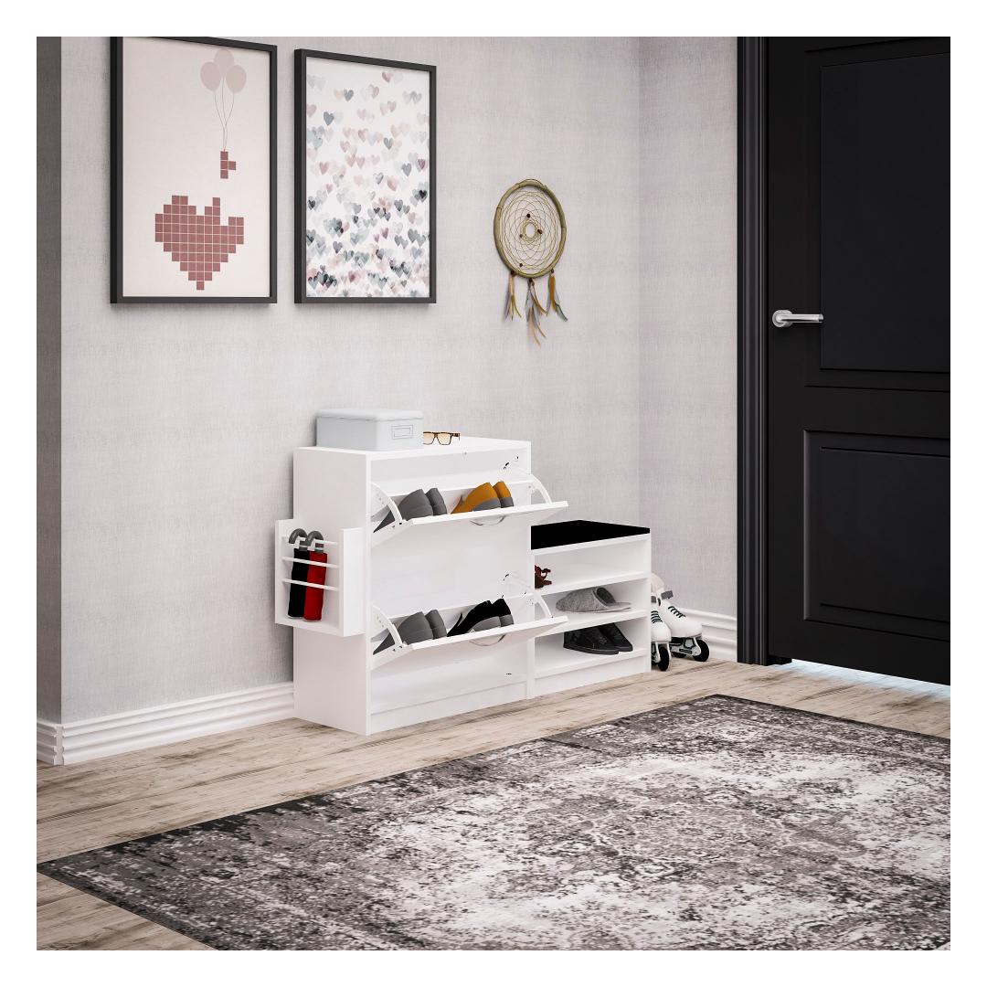 See 100% melamiiniga kaetud puitlaastplaadist valmistatud kingakapp ei ole mitte ainult vastupidav, vaid väljendab oma soliidse valge värviga ka elegantsust. Selle stiilne disain lisab igasse ruumi modernsust, muutes selle täiuslikuks täienduseks teie kodu sisustusele.