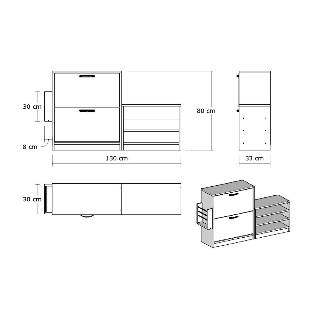 Jalatsikapi mõõtmed - 130 cm laius, 80 cm kõrgus ja 31 cm sügavus - teevad sellest kompaktse hoiulahenduse, mis sobib sujuvalt igasse ruumi. Seda saab isegi seinale kinnitada, säästes nii väärtuslikku põrandapinda.