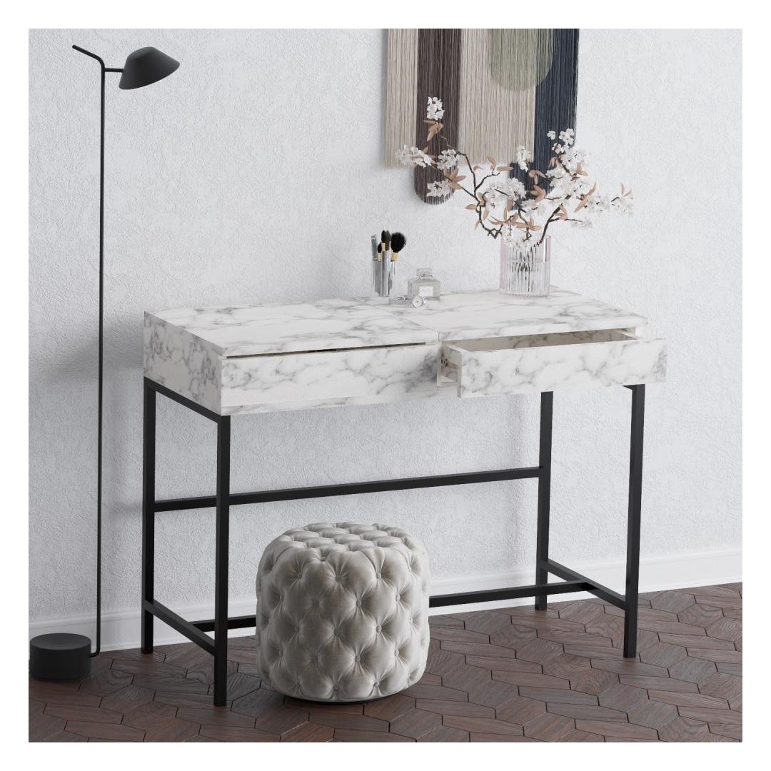 Muuda oma hommikune rutiin meie uimastava marmorist meigilaua abil. See elegantne ese ei ole lihtsalt laud, vaid väljapaistev ese, mis tõstab kogu teie ruumi. Saleeritud carrara marmorist viimistlusest õhkub luksust ja rafineeritust, mis paneb teid tundma end nagu Hollywoodi staar iga kord, kui istute valmis saama.