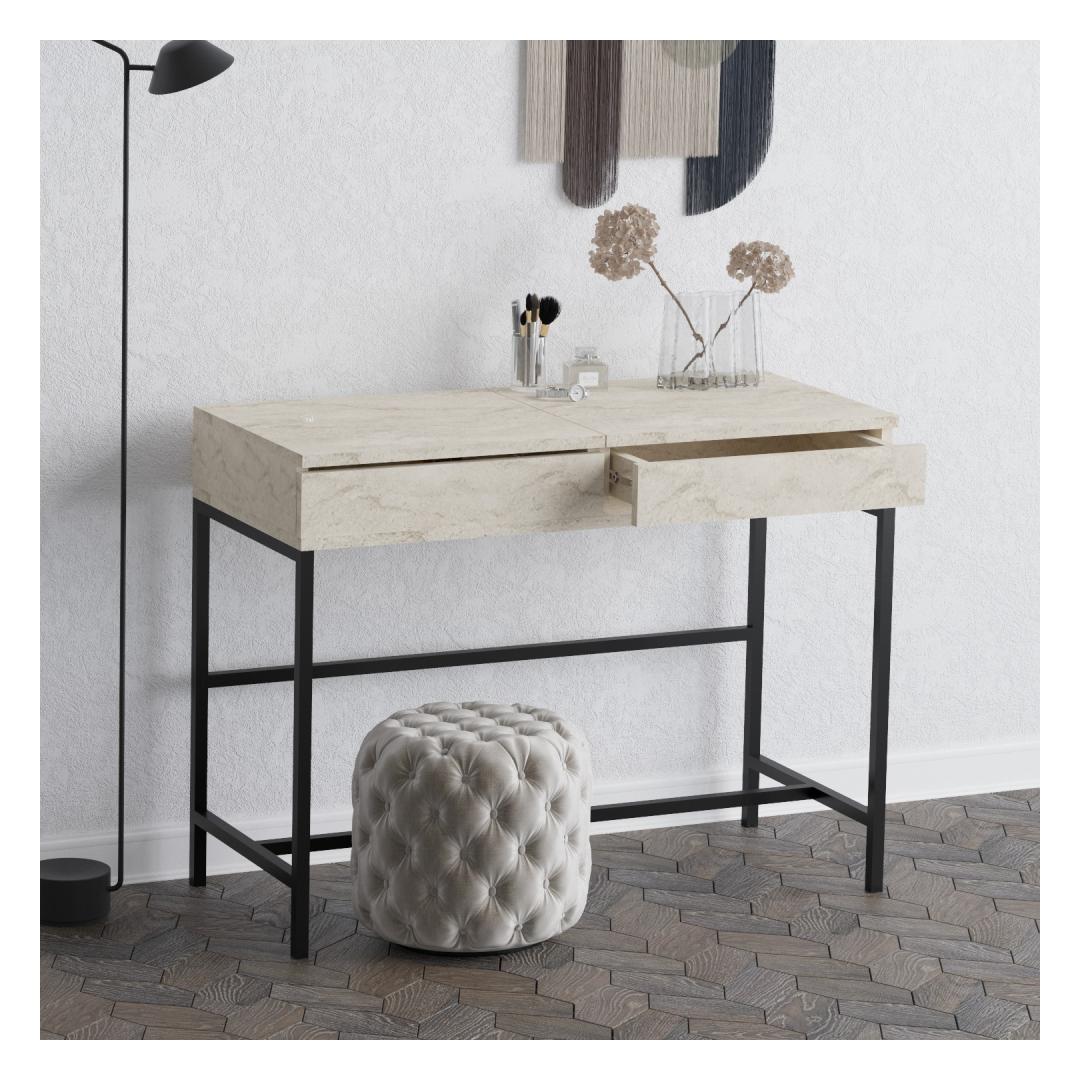 Muuda oma hommikune rutiin meie uimastava marmorist meigilaua abil. See elegantne tükk ei ole lihtsalt mööbliese, vaid stiili ja rafineerituse avaldus. Stiilsed metalljalad lisavad modernsust, samal ajal kui travertiini värvus toob teie ruumi luksustunnet.