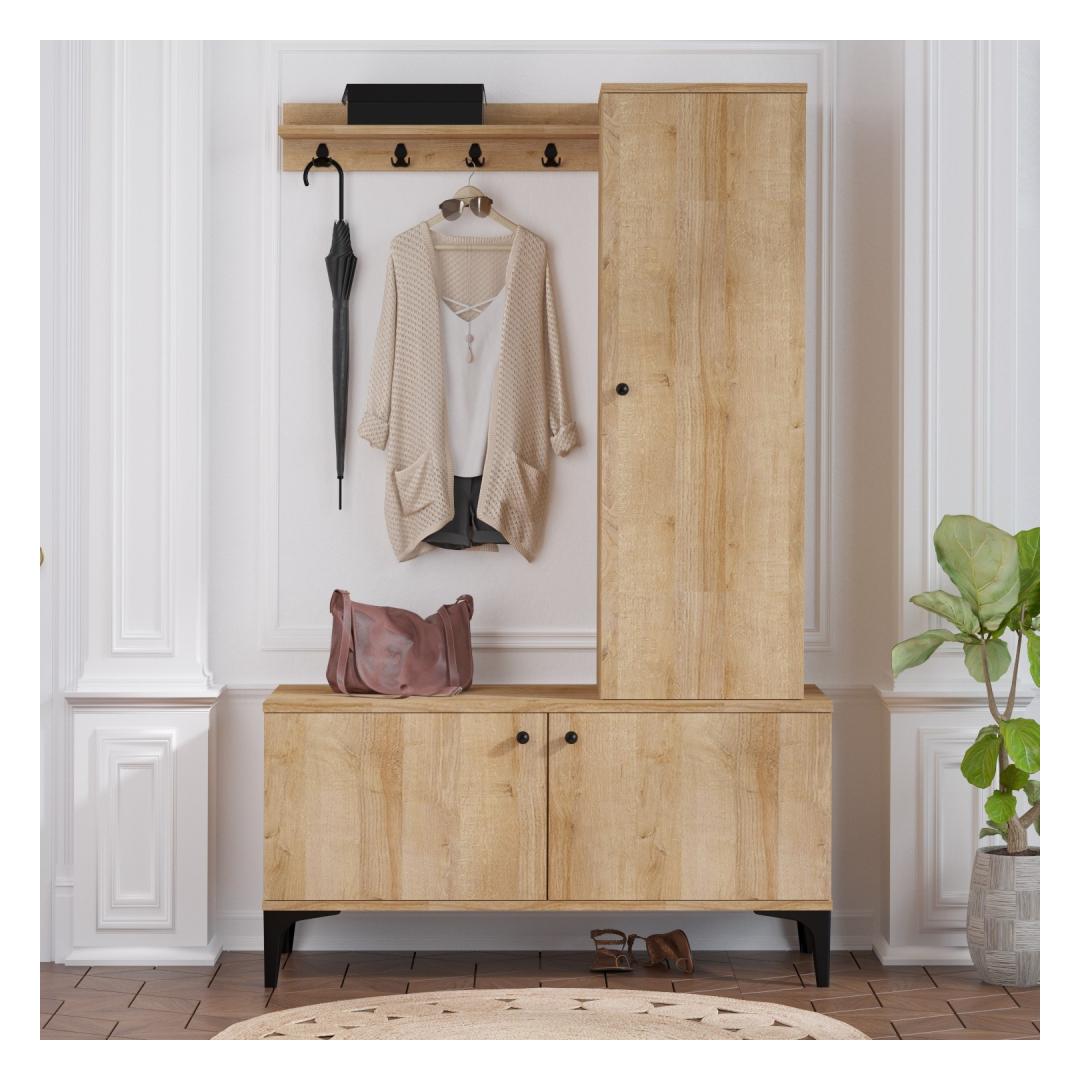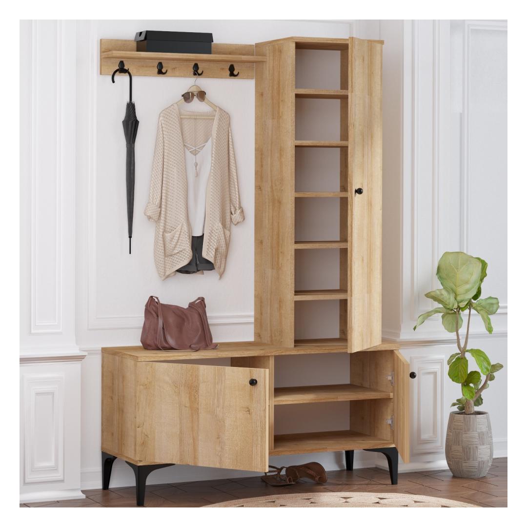 Tänu arvukatele riiulitele pakub see koridorikapp piisavalt hoiuruumi kõigile teie esikusse kuuluvatele esmatarbekaupadele. Alates võtmetest ja rahakottidest kuni kingade ja kottideni on kõigel oma kindel koht, mis hoiab teie koridori korras ja organiseeritud.