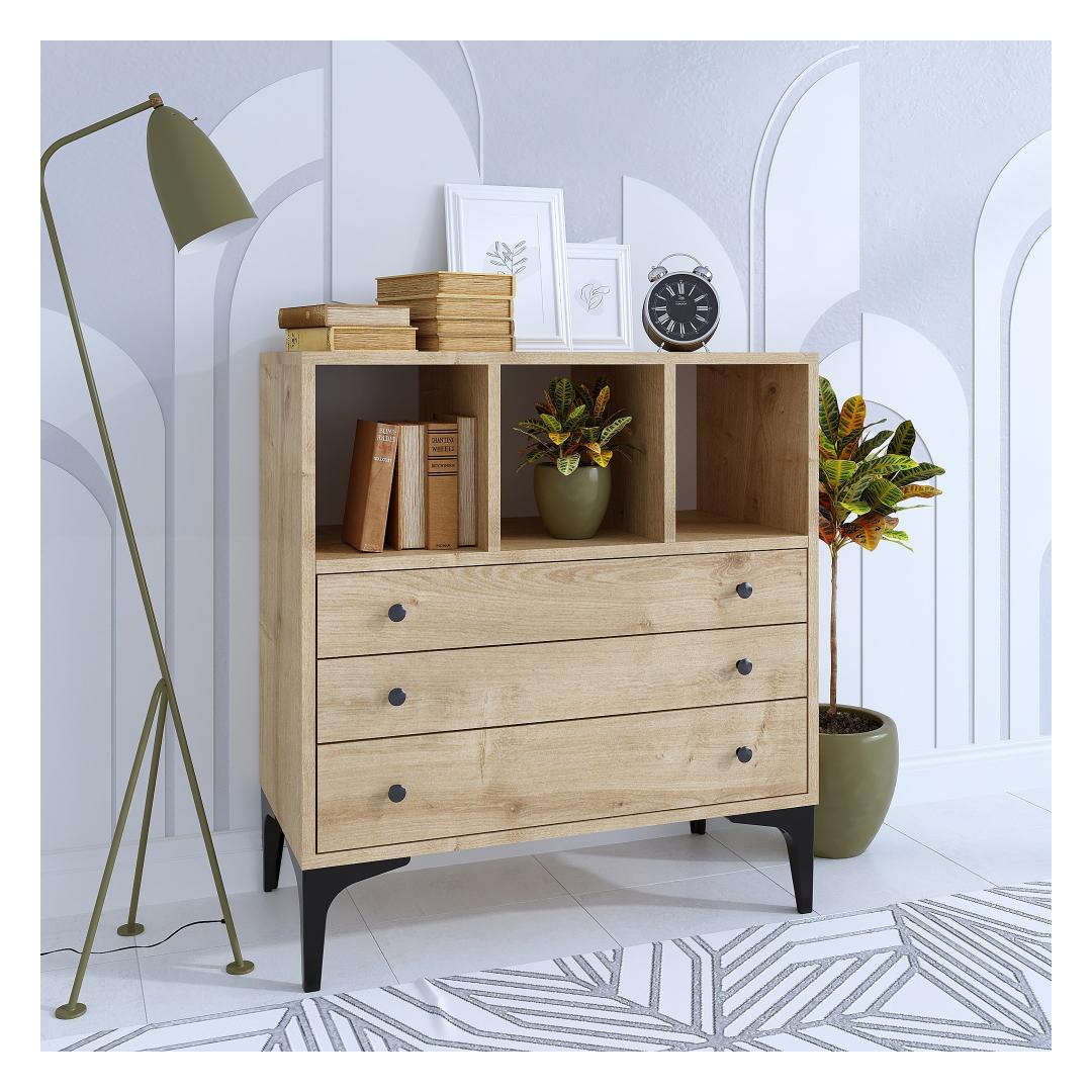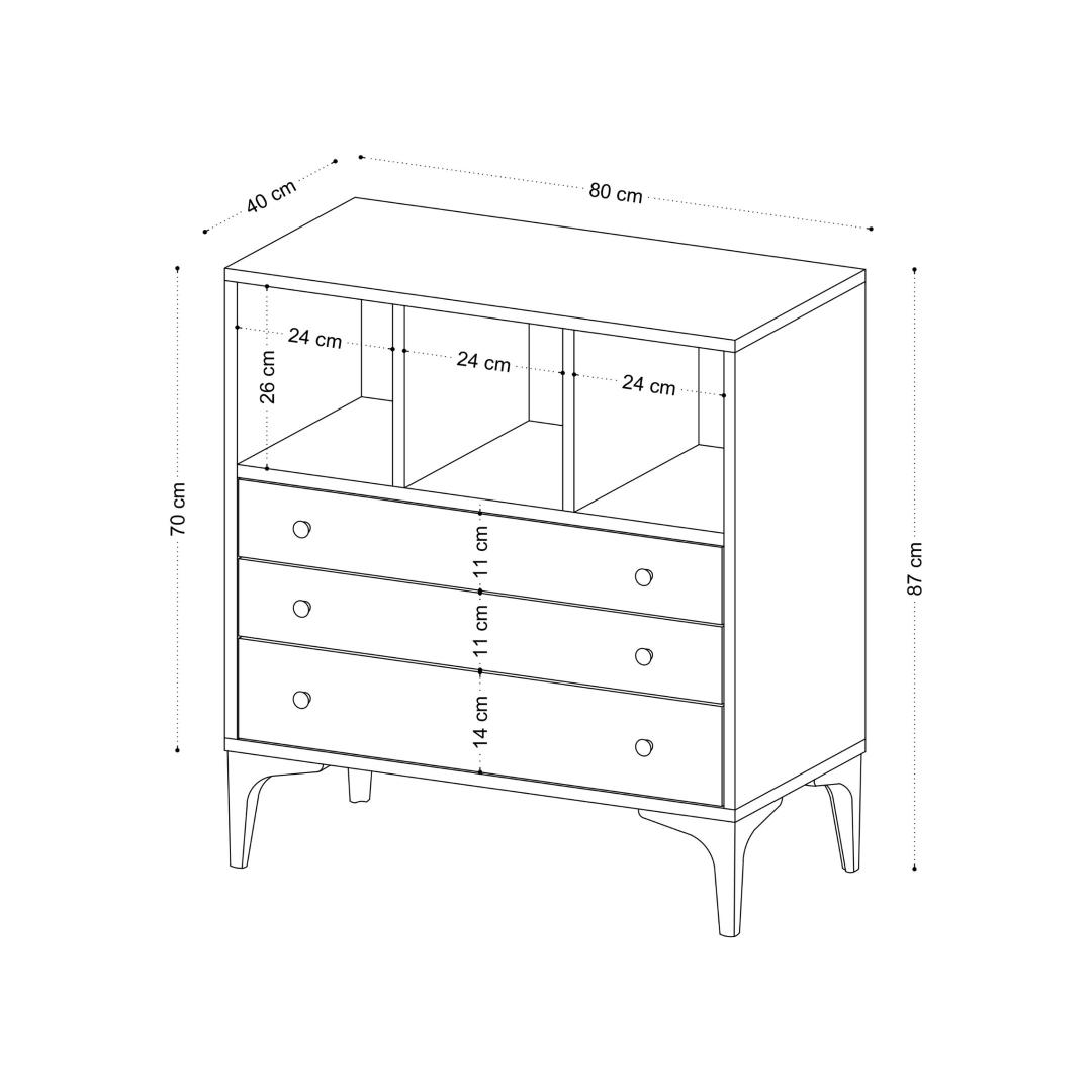 Kapp on toetatud elegantsetele plastmassist jalgadele, mis tagavad stabiilsuse ja modernse puudutuse selle üldisele disainile. 15 cm kõrguste jalgadega seisab see kapp kõrgel ja uhkelt, lisades teie magamistuppa uhkuse tunnet.