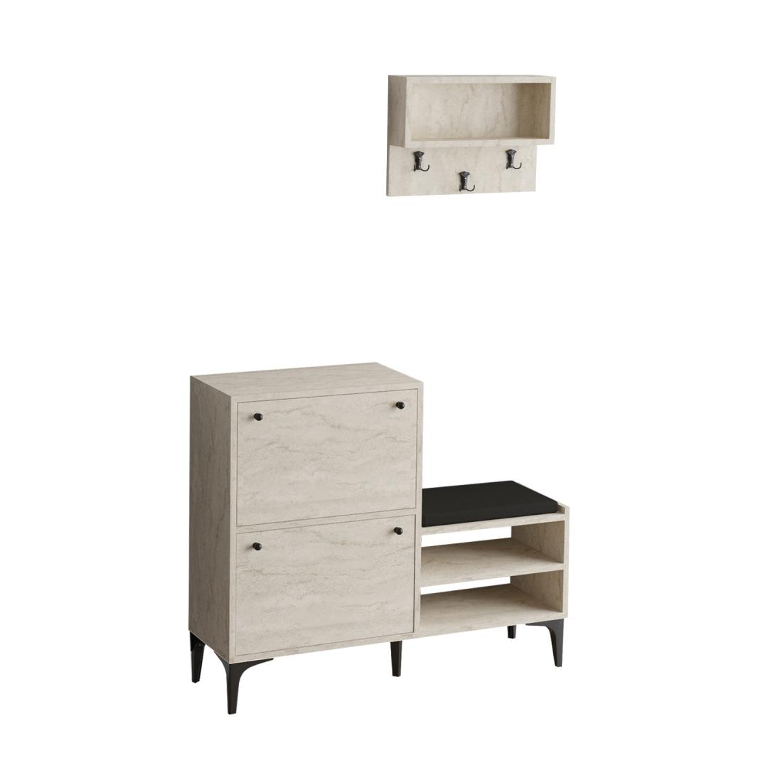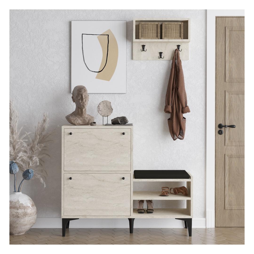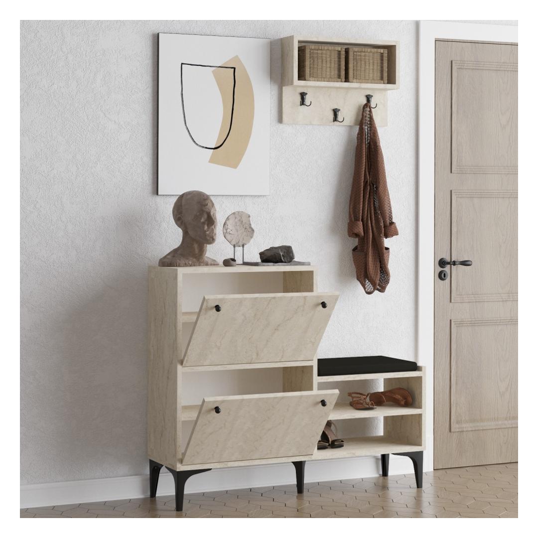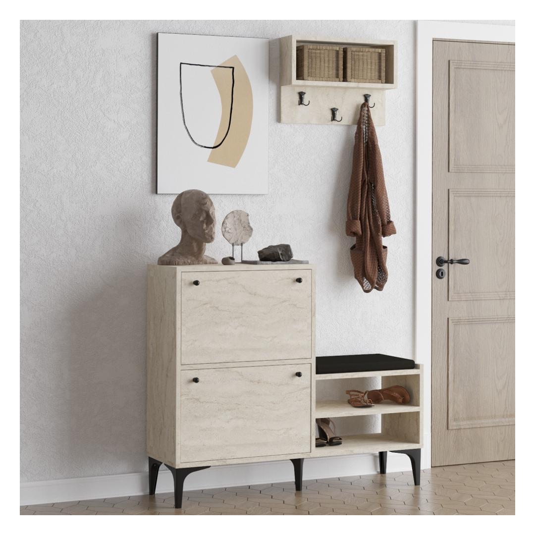 Tänu oma elegantsele disainile ja travertiini värvile on see kingakapp stiilne täiendus igasse koju. Riputatav mantlihoidja lisab funktsionaalsust ja mugavust, võimaldades teil hõlpsasti mantleid, sallid ja kotid üles riputada. Arvukad riiulid pakuvad rohkelt ruumi kõigile teie kingadele, hoides need korralikult ja korras.