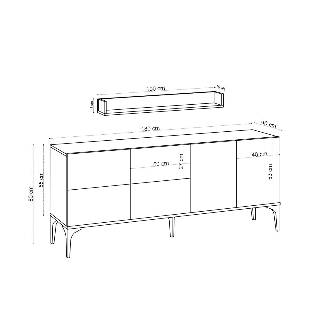 Width: 180 cm Height: 80 cm Depth: 40 cm