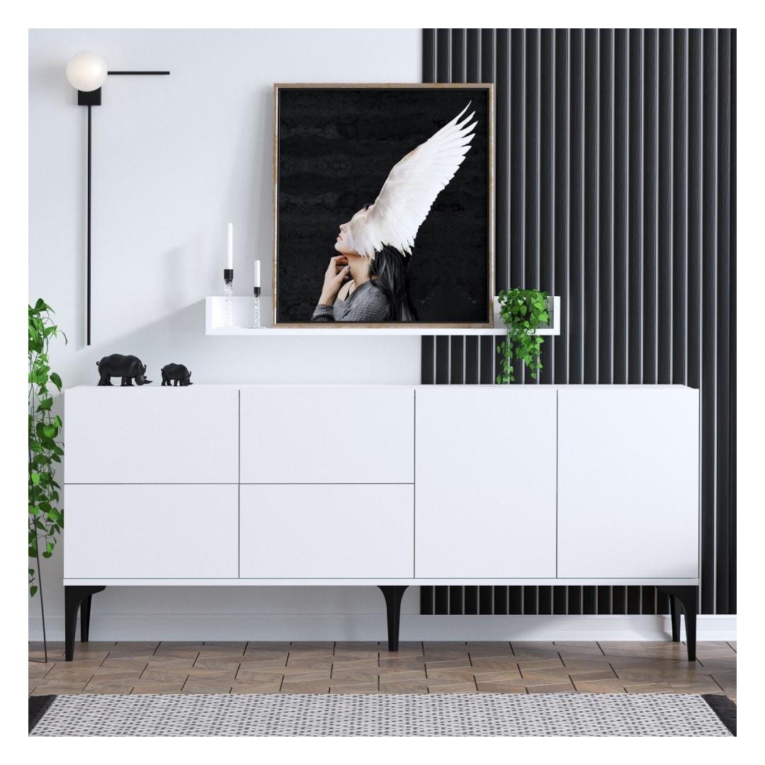 Sukelduge selle konsooli puhtasse elegantsi, mis on loodud selleks, et tõsta teie kodu sisekujundus uutesse kõrgustesse. Silmapaistva valge ja julge musta värvi kombinatsioon loob silmatorkava kontrasti, mis õhkab modernsust ja rafineeritust. See on ideaalne täiendus igasse kaasaegsesse või minimalistlikku interjööri, lisades sellele klassi ja rafineeritust.