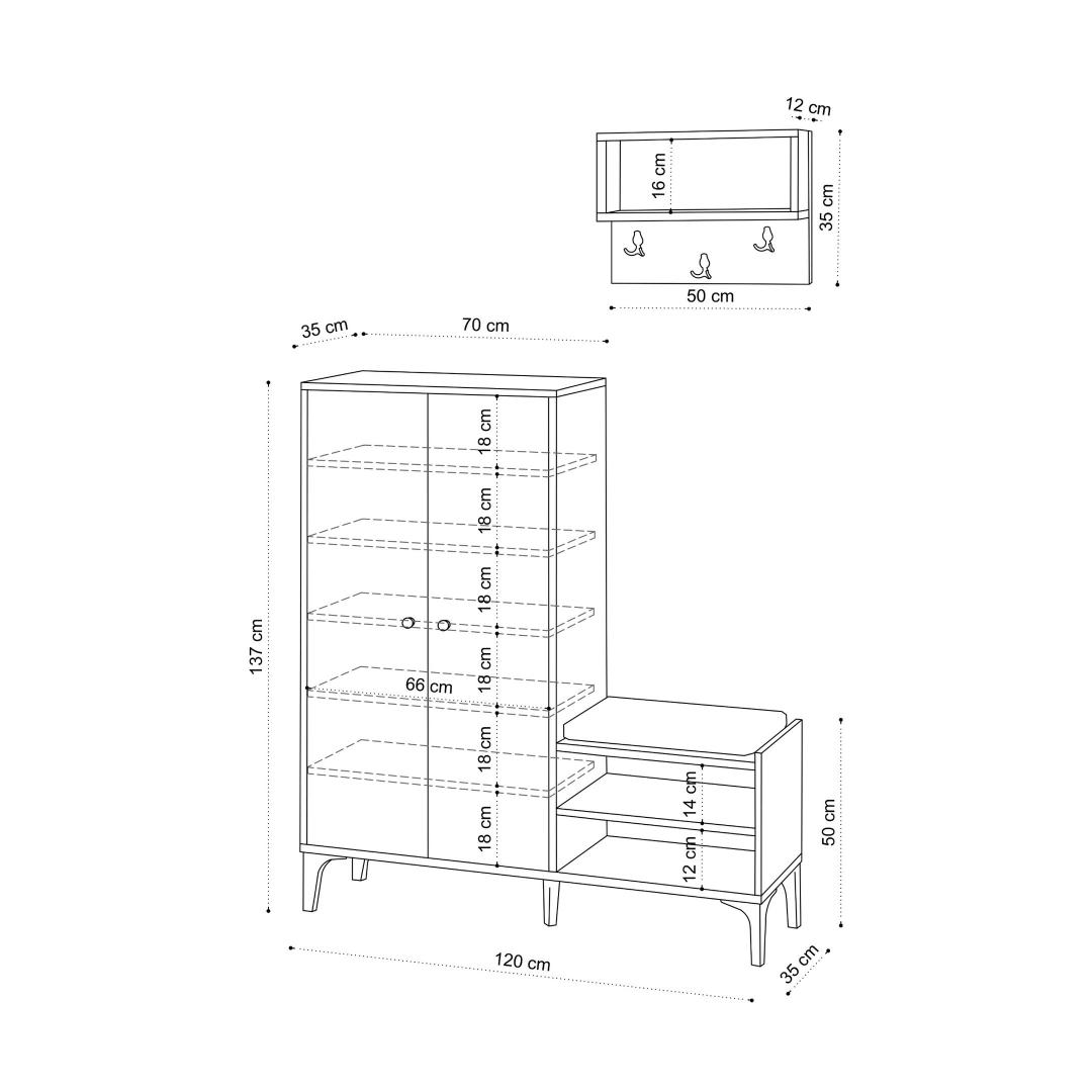 Meie elegantse ja moodsa disainiga kingakapp sulandub sujuvalt mis tahes interjööri stiiliga. Olenemata sellest, kas teie kodu sisustus on traditsiooniline, tööstuslik või skandinaaviapärane, see ese parandab vaevata teie ruumi üldist esteetikat. Kaunis tammevärv lisab sooja ja elegantsi, luues teie koju külalislahke atmosfääri.