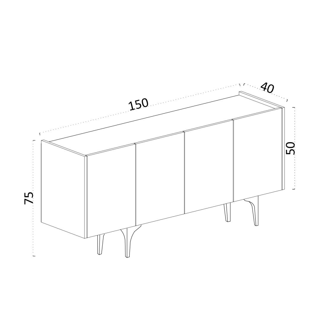 • Suurus: Laius: 150 cm, kõrgus: 75 cm, sügavus: 40 cm.