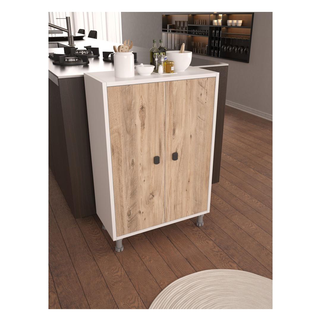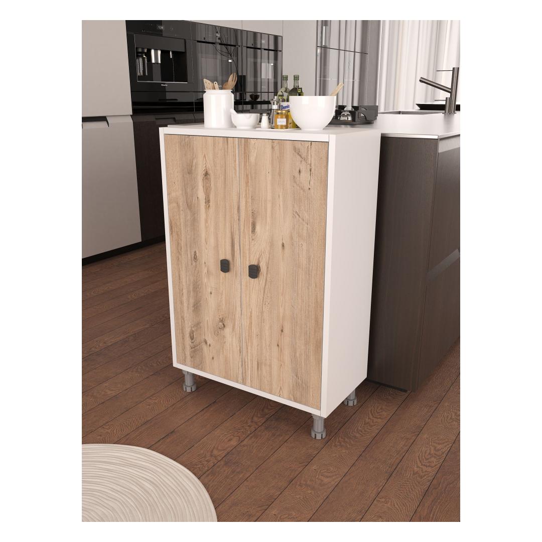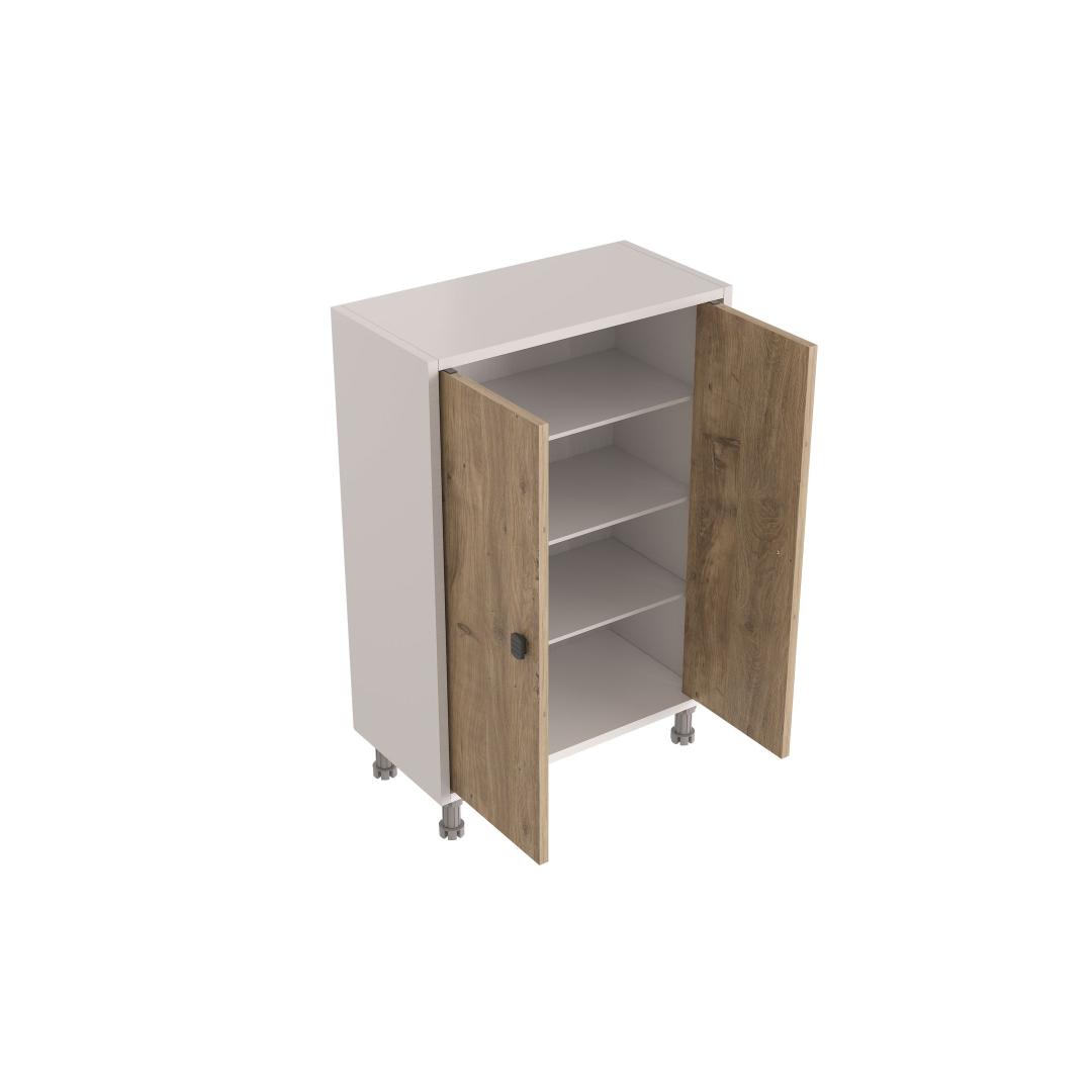 Valmistatud 100% melamiinkattega puitlaastplaadist, on see kapp loodud kestma. 18 mm paksus tagab vastupidavuse ja stabiilsuse, samas kui plastjalad pakuvad lisatuge.