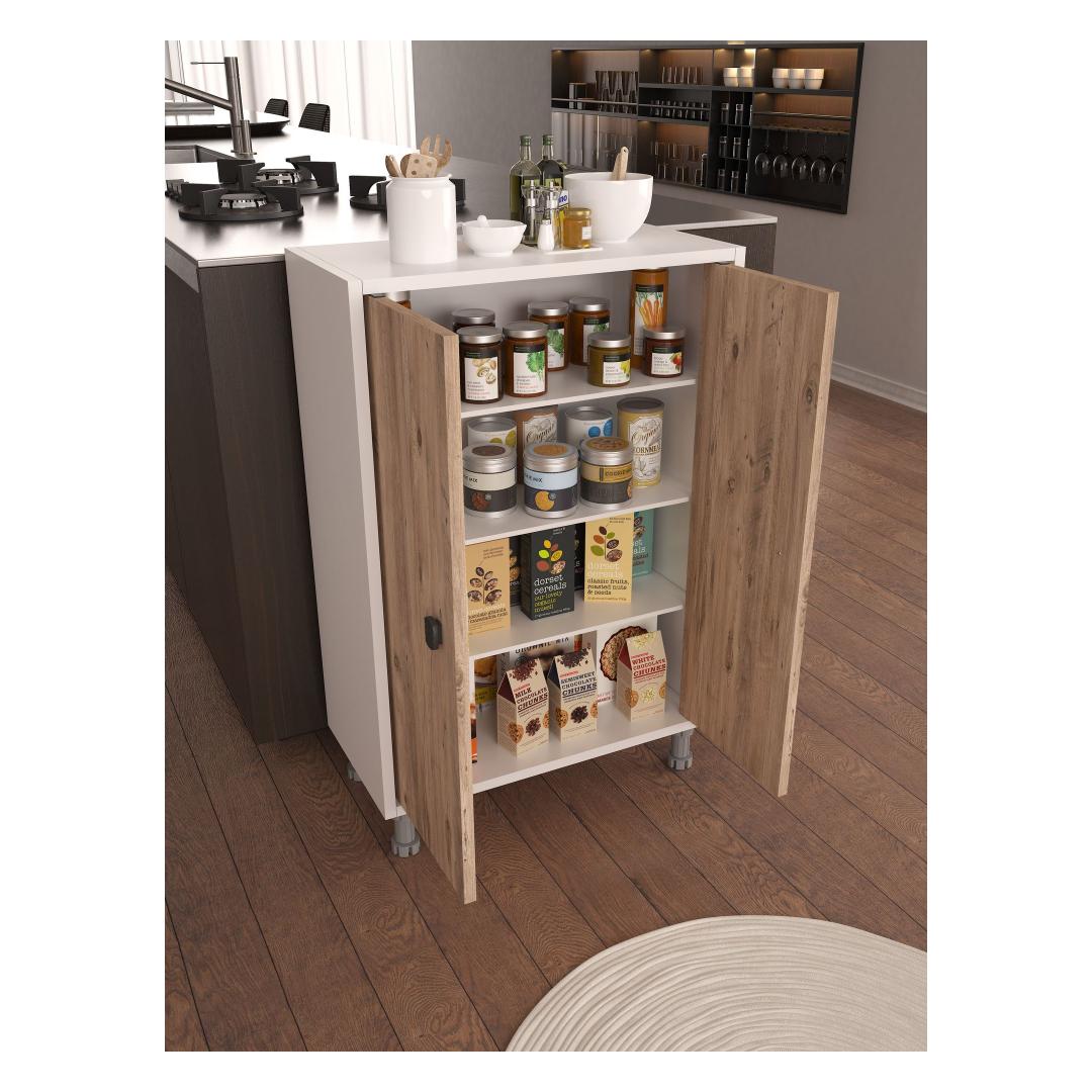 Selle voolujoonelise disaini ja modernse värvigammaga, mis koosneb Atlandi männist ja valgest, lisab see kapp igasse ruumi elegantsi. Rohked riiulid pakuvad piisavalt ladustamisruumi kõigi sinu asjade jaoks, aidates hoida sinu ruumi korras ja organiseerituna.