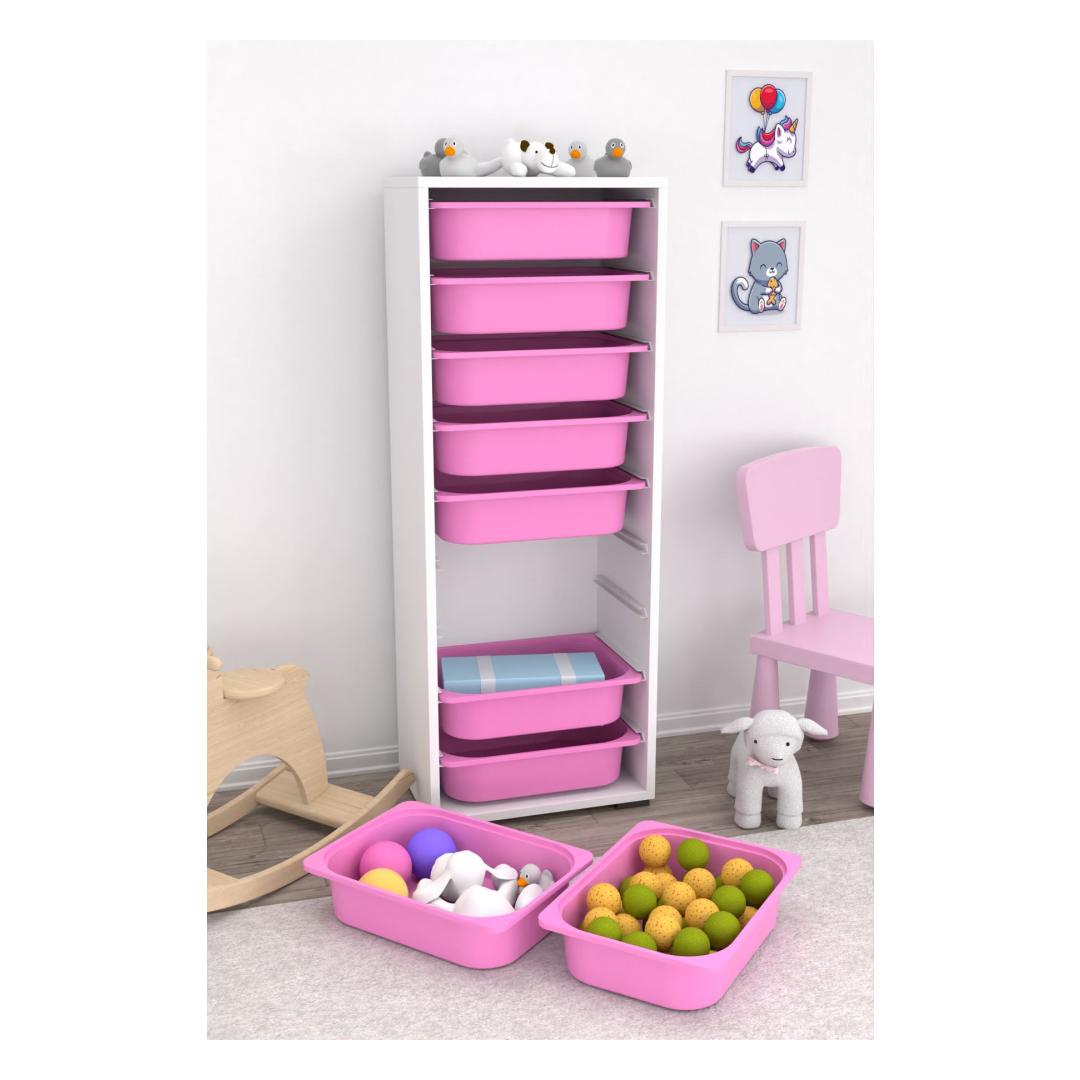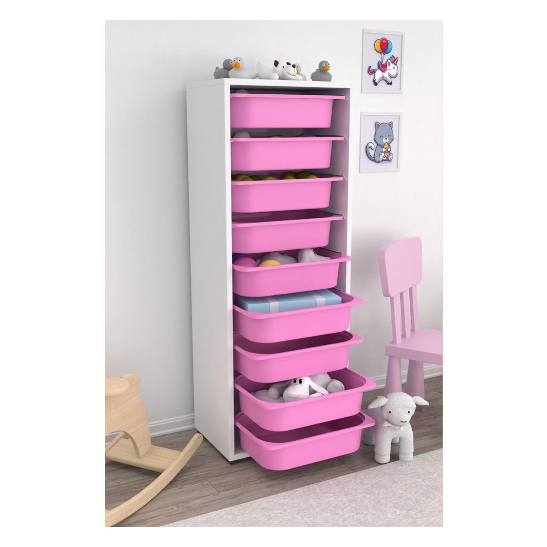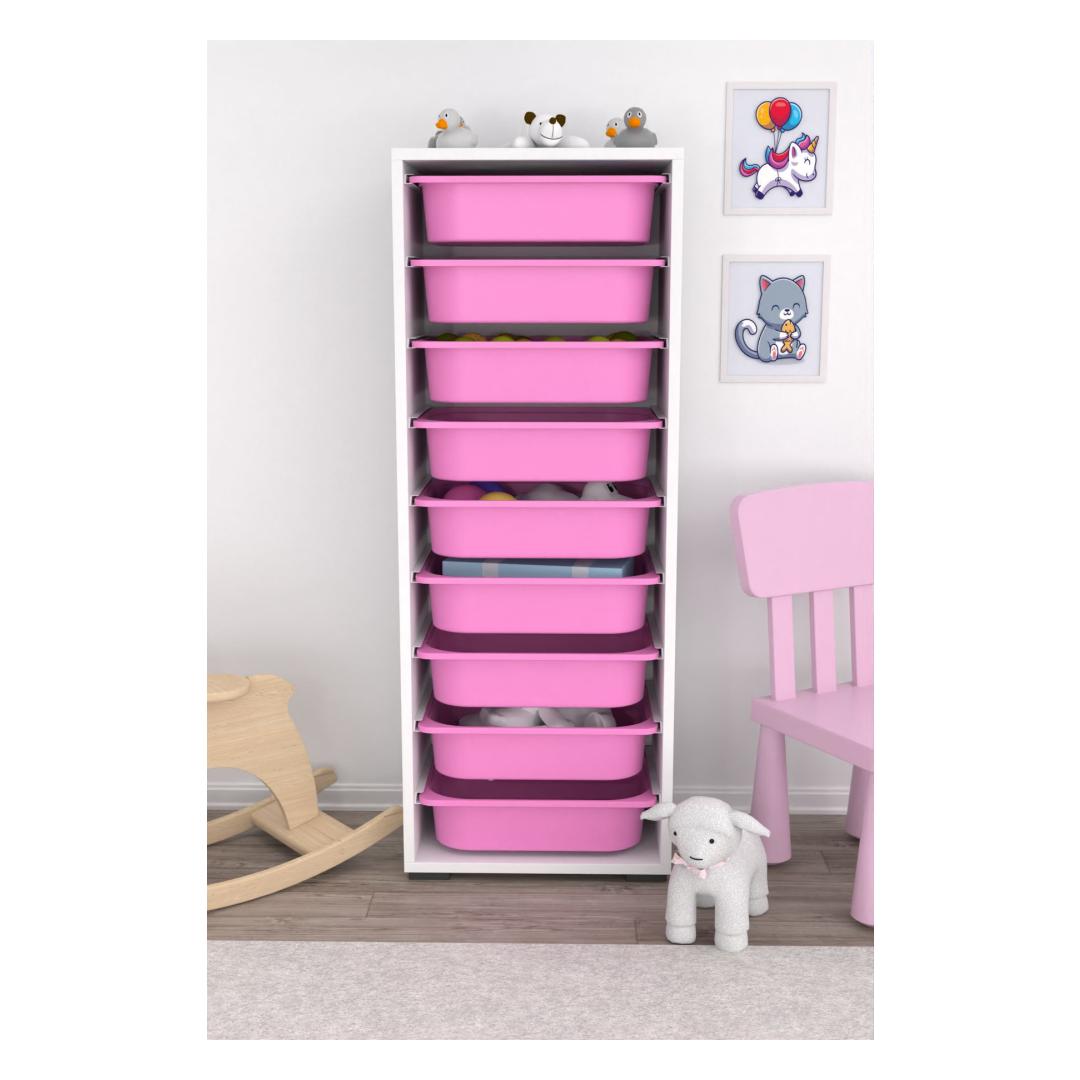Valmistatud 100% melamiinkattega puitlaastplaadist, on see kapp mitte ainult vastupidav, vaid ka lihtne puhastada. Sujuv valge ja roosa värvikombinatsioon lisab sinu ruumi värvi, muutes selle stiilseks lisandiks igasse tuppa.