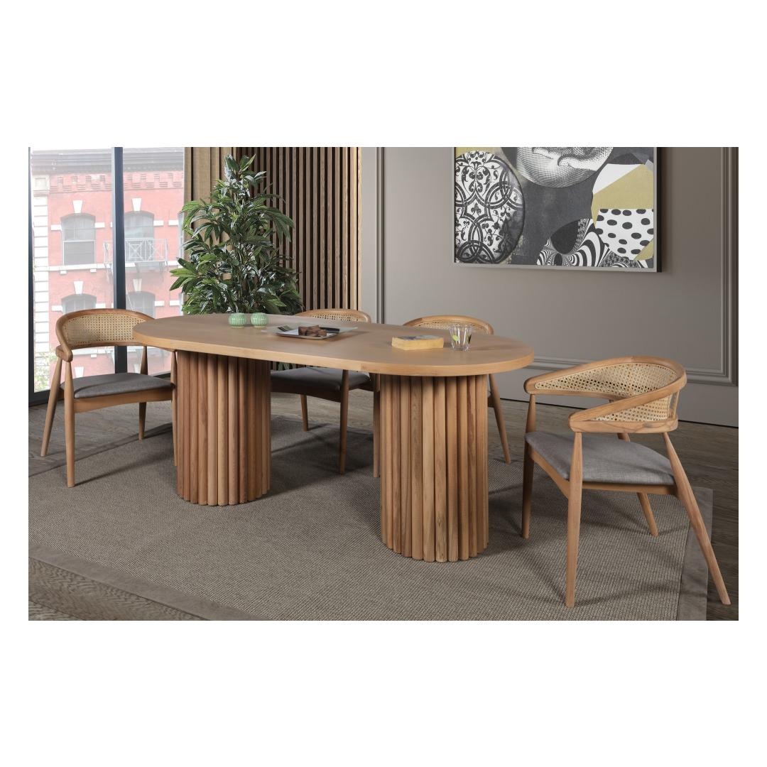 Selle komplekti naturaalne värv lisab igale söögitoa sisustusele soojust ja võlu. Olenemata sellest, kas naudite perega vabaaja sööki või korraldate pidulikku õhtusööki, loob see komplekt igaks juhuks täiusliku atmosfääri.
