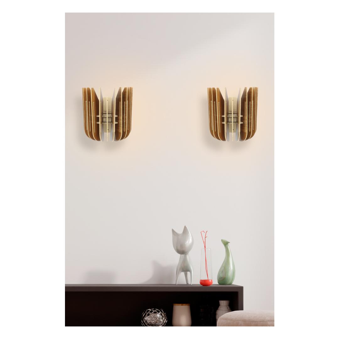Tulip Sconce seinalamp on valmistatud kvaliteetsest MDF materjalist, tagades vastupidavuse ja pikaealisuse. Pähklipuu värv lisab disainile rafineeritust, muutes selle mitmekülgseks osaks, mis sobib igasse sisustustiili.