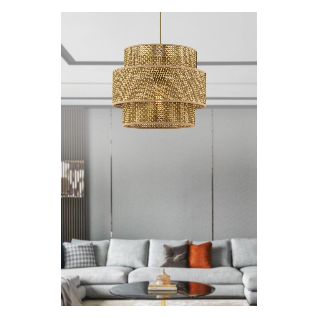 Muuda oma eluruum meie uimastava metallkorpusega lühtri abil. Sellel peenel esemel on kaunist beeži värvi riidest kork, mis lisab elegantsi igasse ruumi. Kübara suurus 30 x 30 cm ja kõrgus 27 cm loovad silmatorkava fookuspunkti, samas kui 65 cm suurune kogukõrgus muudab selle ideaalseks riputamiseks igas ruumis.