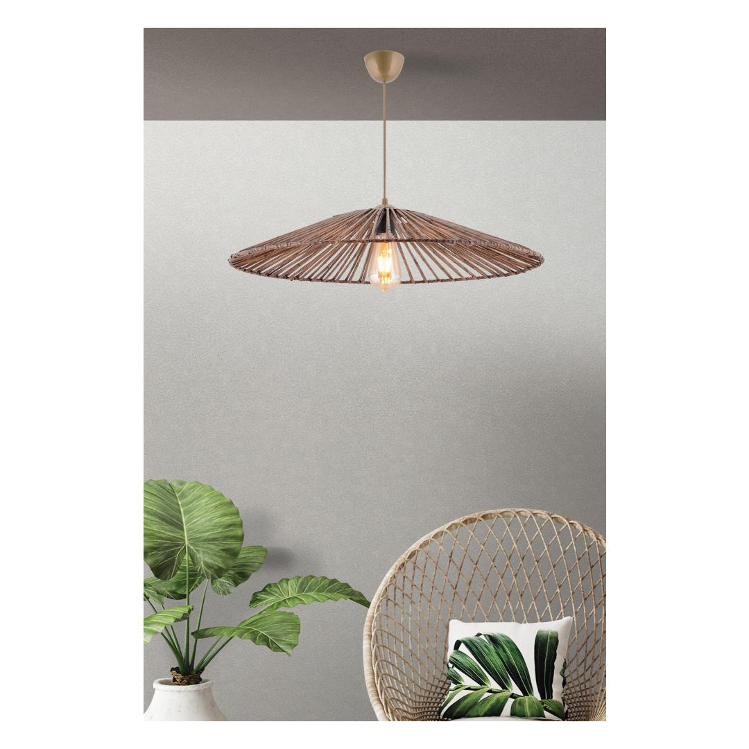 Tehke avaldus selle ainulaadse lühtriga, mis ühendab kaasaegse disaini looduse inspireeritud võluga. Peen metallkorpus ja bambusest kork loovad kauni kontrasti, muutes selle ideaalseks keskpunktiks teie elutoas, söögitoas või magamistoas.