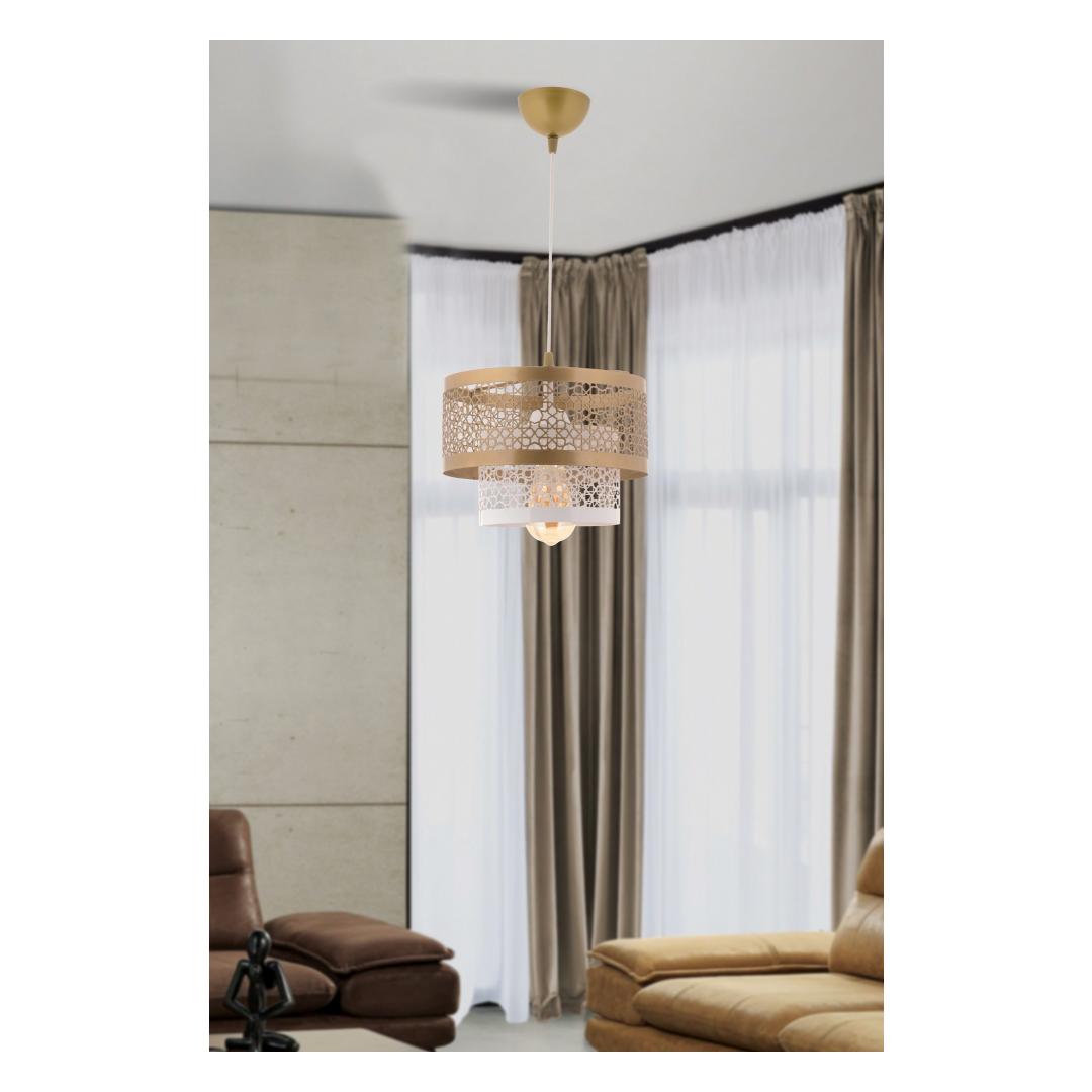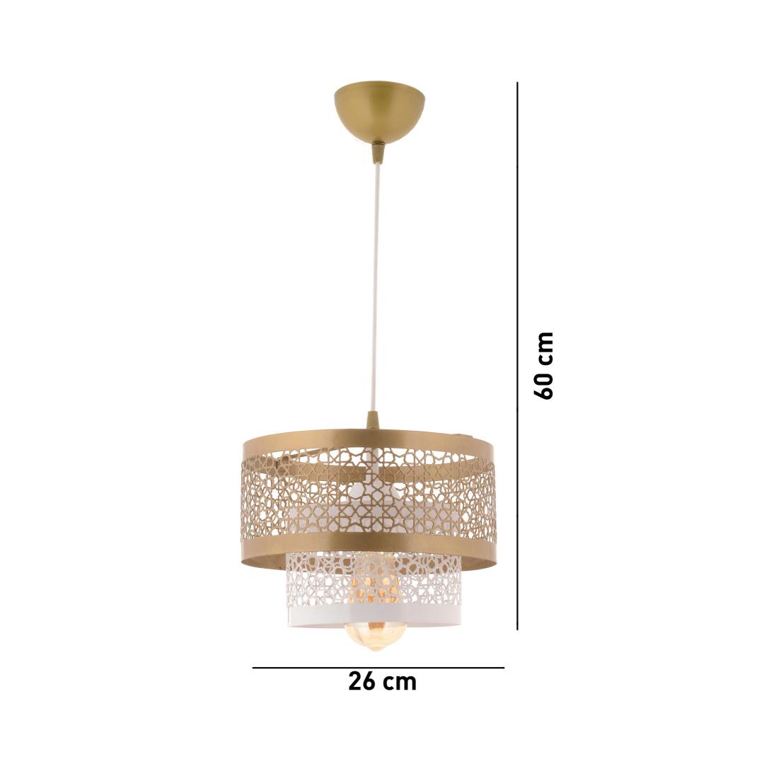 Lühtri keeruline metallkeha eritab rikkalikku ja suursugusust, luues kütkestava fookuspunkti igas ruumis. Valgete ja kuldsete värvide kombinatsioon lisab puudutust modernsusest ja elegantsist, muutes selle mitmekülgseks tükiks, mis täiendab igasugust sisekujundust.